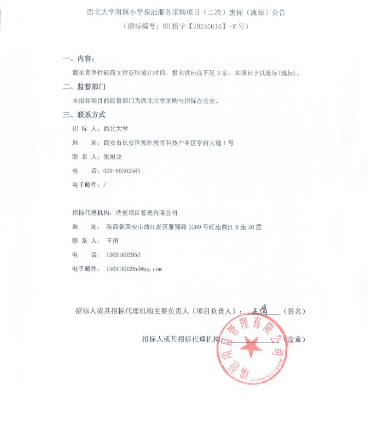 星空app官网附属小学保洁服务采购项目(二次)废标(流标)公告