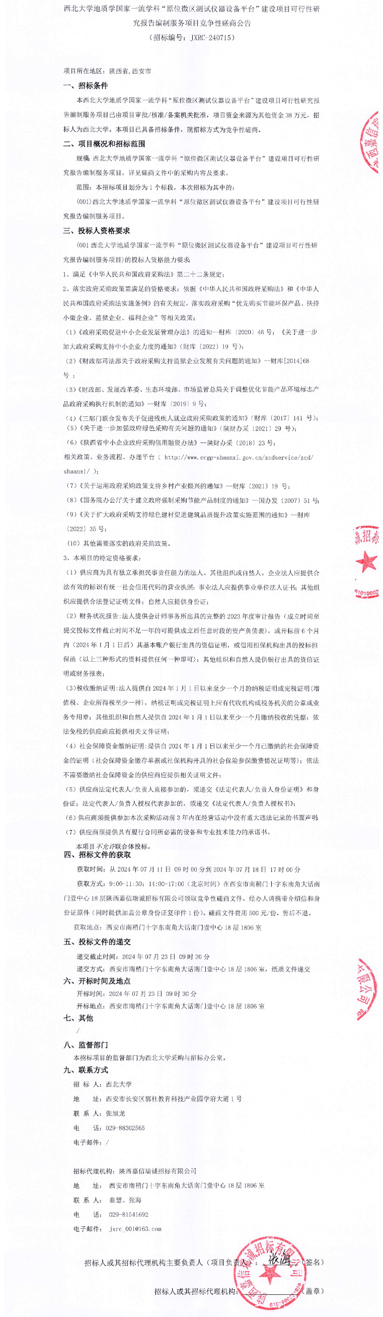 星空app官网地质学国家一流学科“原位微区测试仪器设备平台”建设项目可行性研究报告编制服务项目竞争性磋商公告