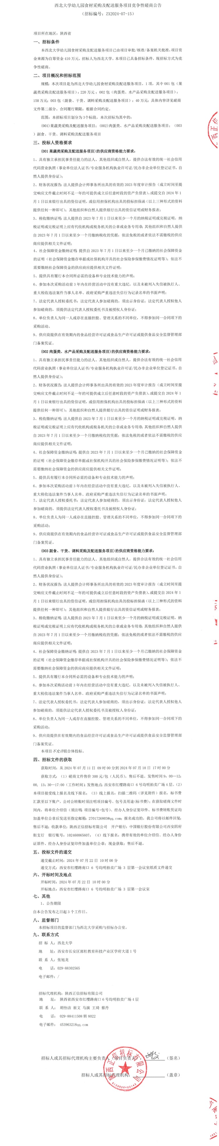 星空app官网幼儿园食材采购及配送服务项目竞争性磋商公告