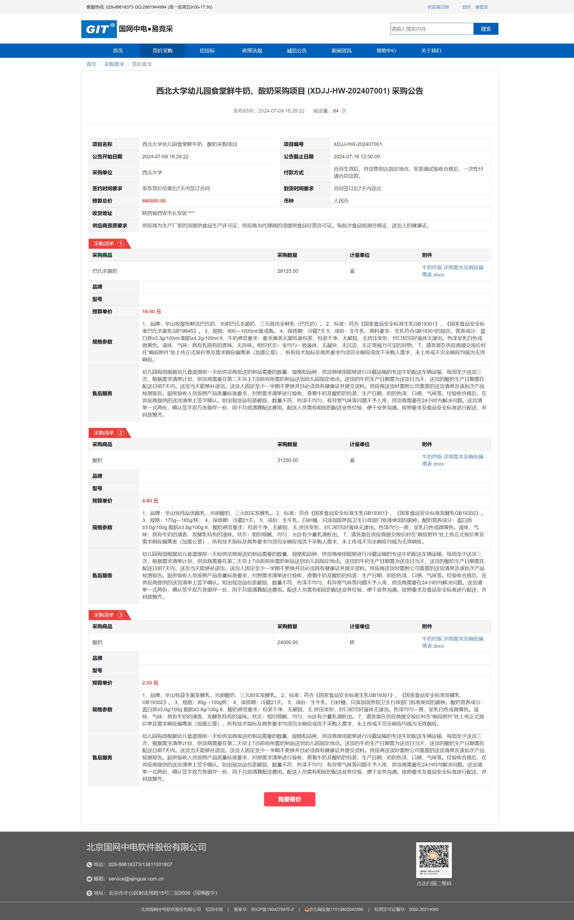 星空app官网幼儿园食堂鲜牛奶、酸奶采购项目 (XDJJ-HW-202407001) 竞价采购公告 作者: 编辑:采购与招标办公室 时间:2024-07-15 原公告链接:https://www.ejingcai.com.cn/site/bidding/detail/11568