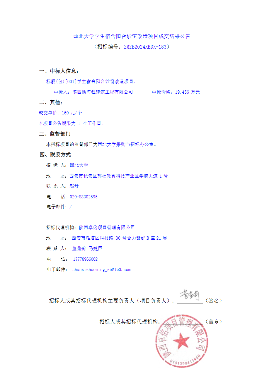 星空app官网学生宿舍阳台纱窗改造项目成交结果公告
