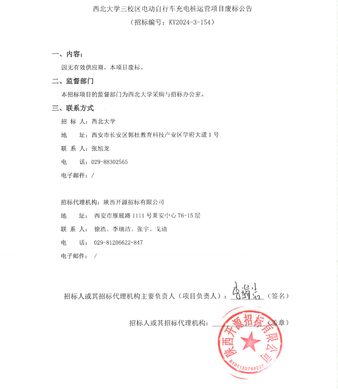 星空app官网三校区电动自行车充电桩运营项目废标公告