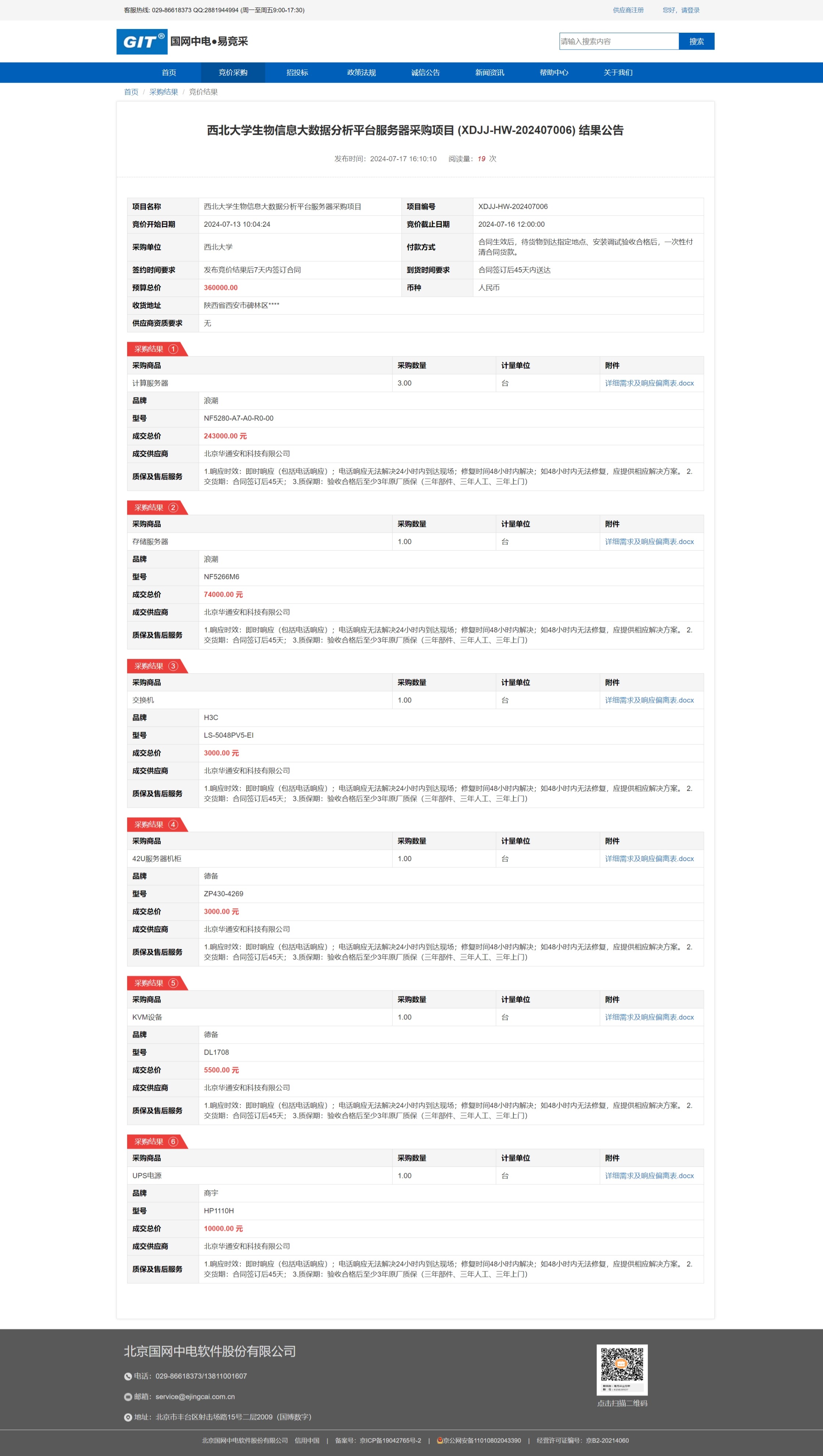 星空app官网生物信息大数据分析平台服务器采购项目 (XDJJ-HW-202407006) 竞价结果公告 作者: 编辑:采购与招标办公室 时间:2024-07-17 原公告链接:https://www.ejingcai.com.cn/site/bidding/detail/11726