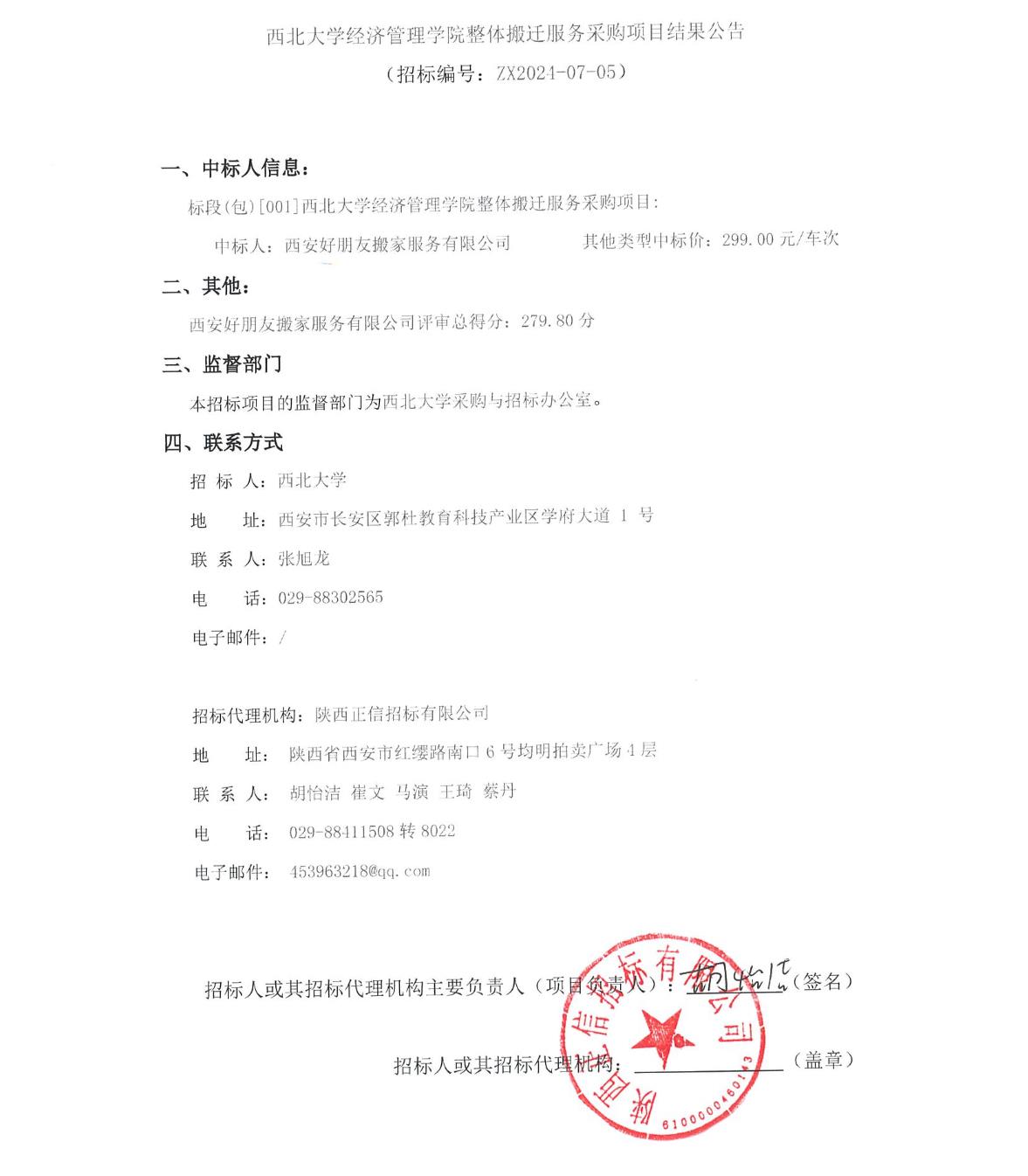 星空app官网经济管理学院整体搬迁服务采购项目结果公告