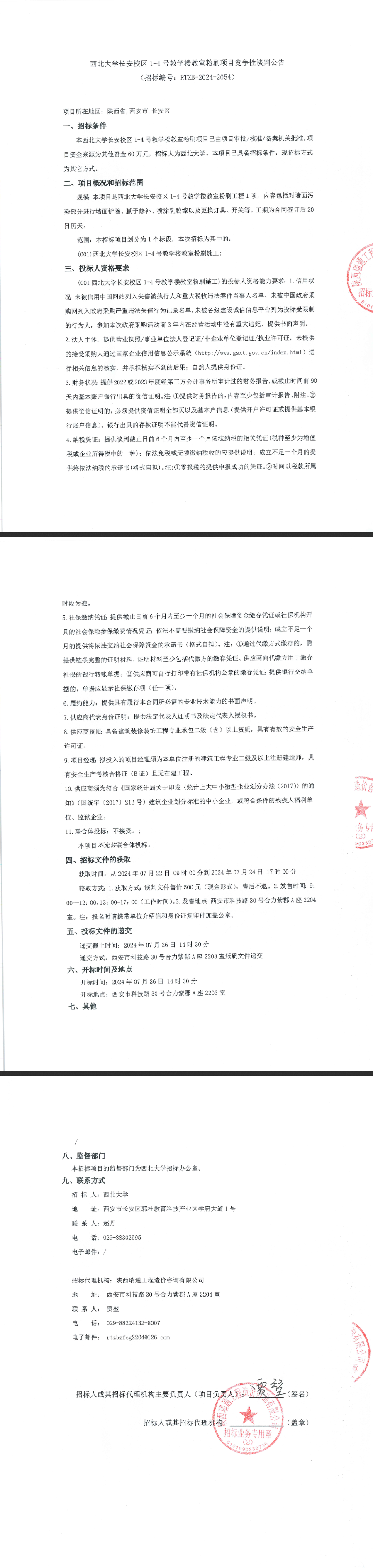 星空app官网长安校区1-4号教学楼教室粉刷项目竞争性谈判公告