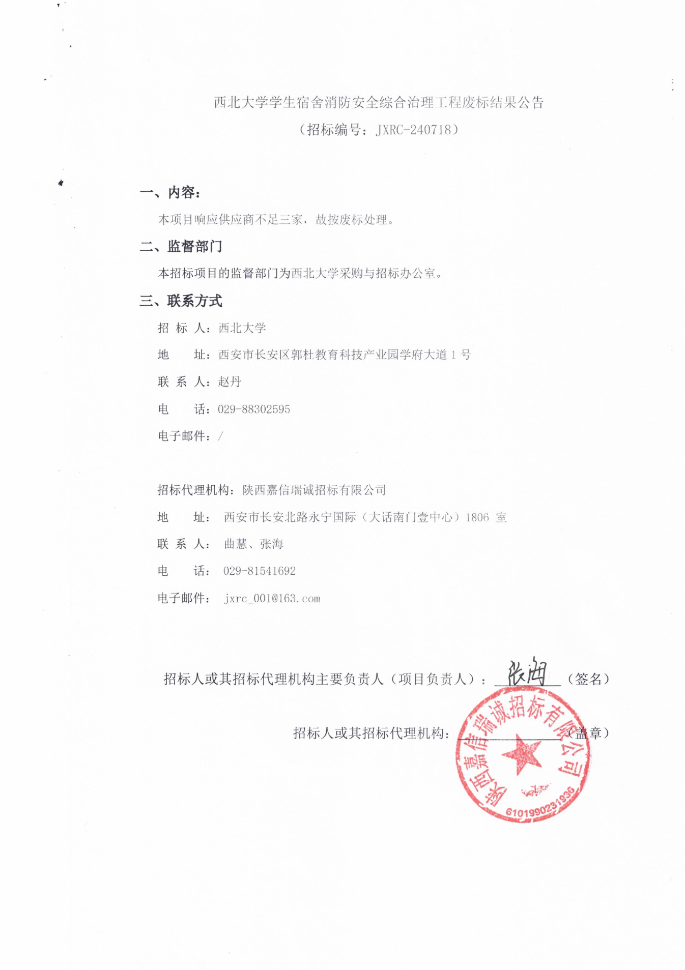 星空app官网学生宿舍消防安全综合治理工程废标结果公告