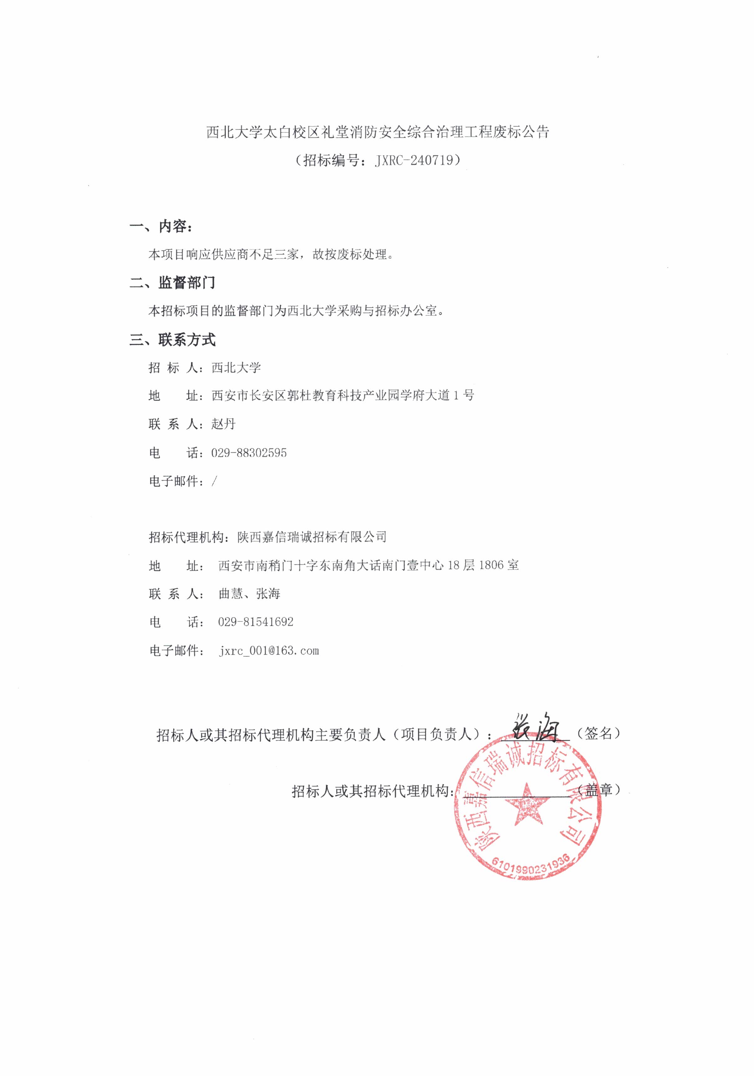 星空app官网太白校区礼堂消防安全综合治理工程废标公告