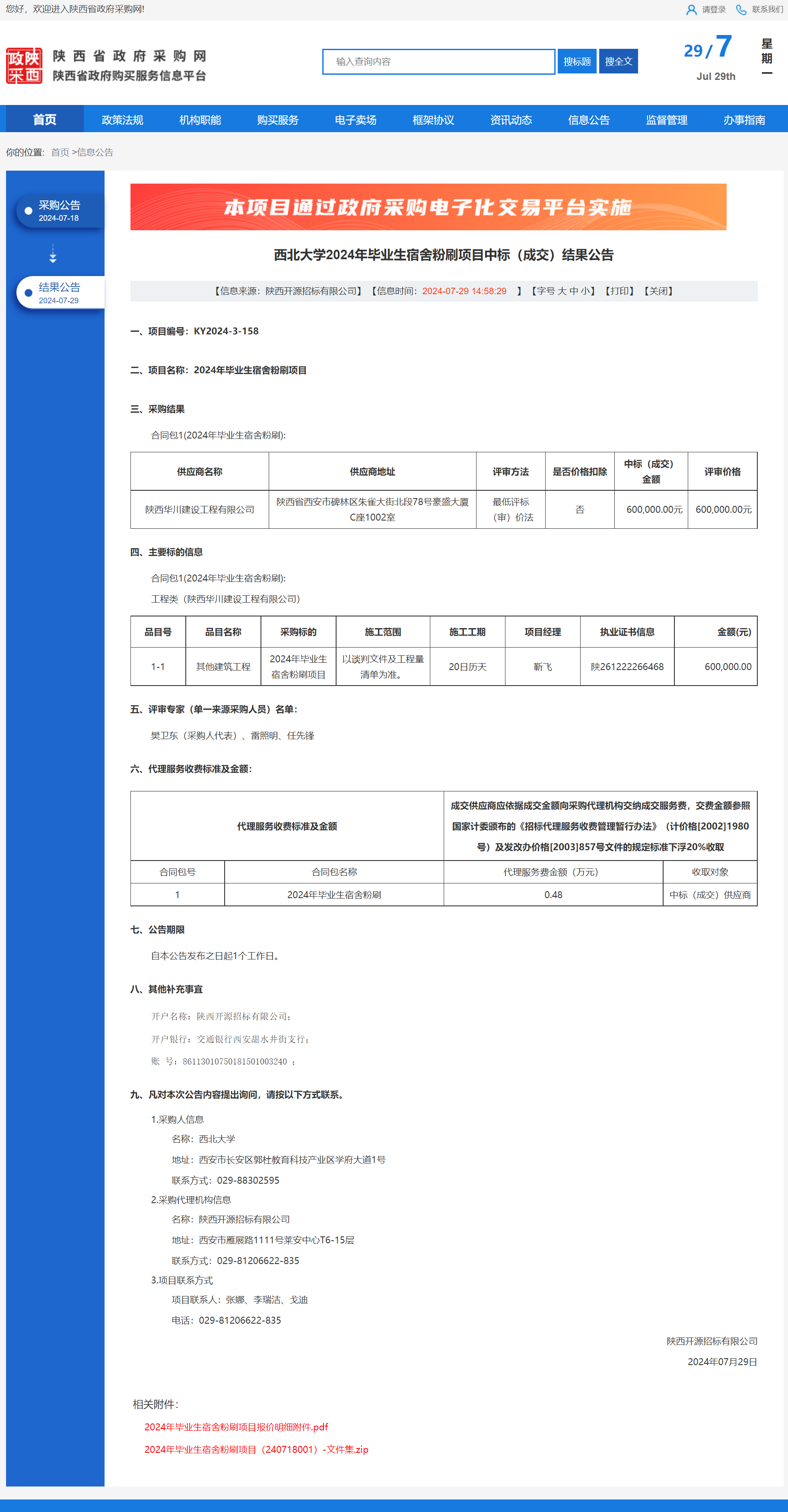 星空app官网2024年毕业生宿舍粉刷项目中标(成交)结果公告