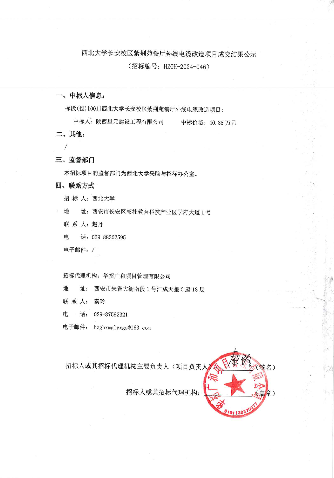 星空app官网长安校区紫荆苑餐厅外线电缆改造项目成交结果公示
