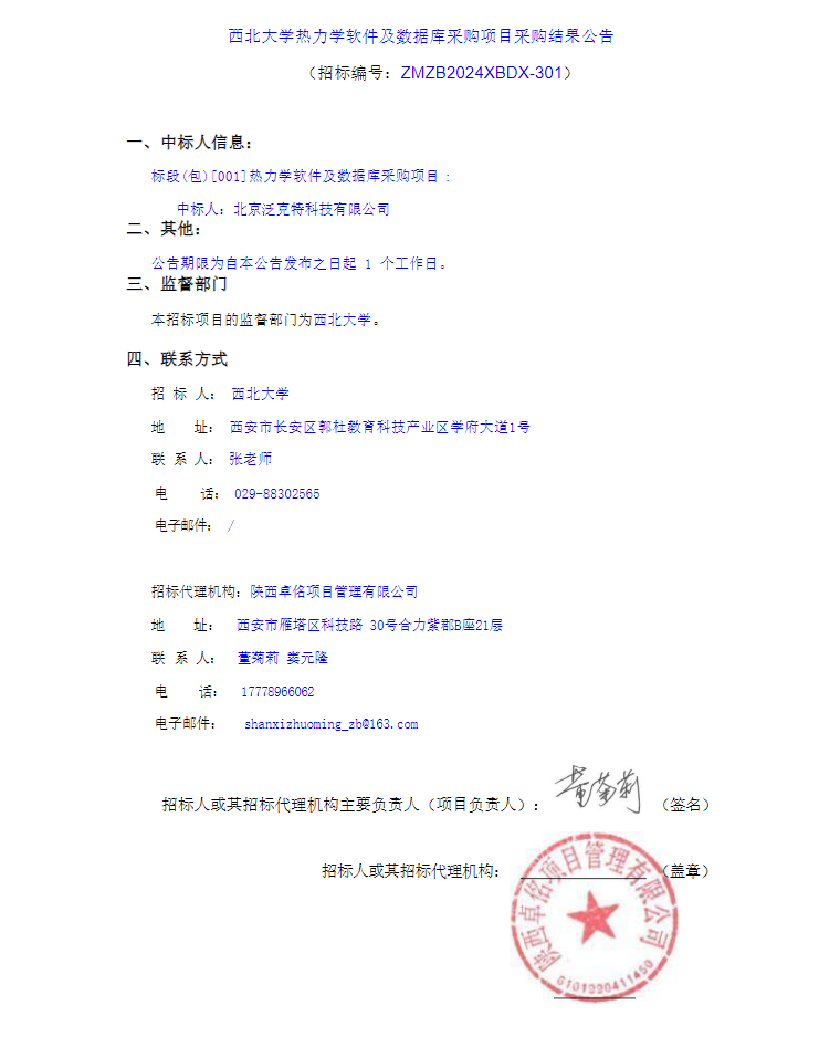 星空app官网热力学软件及数据库采购项目采购结果公告