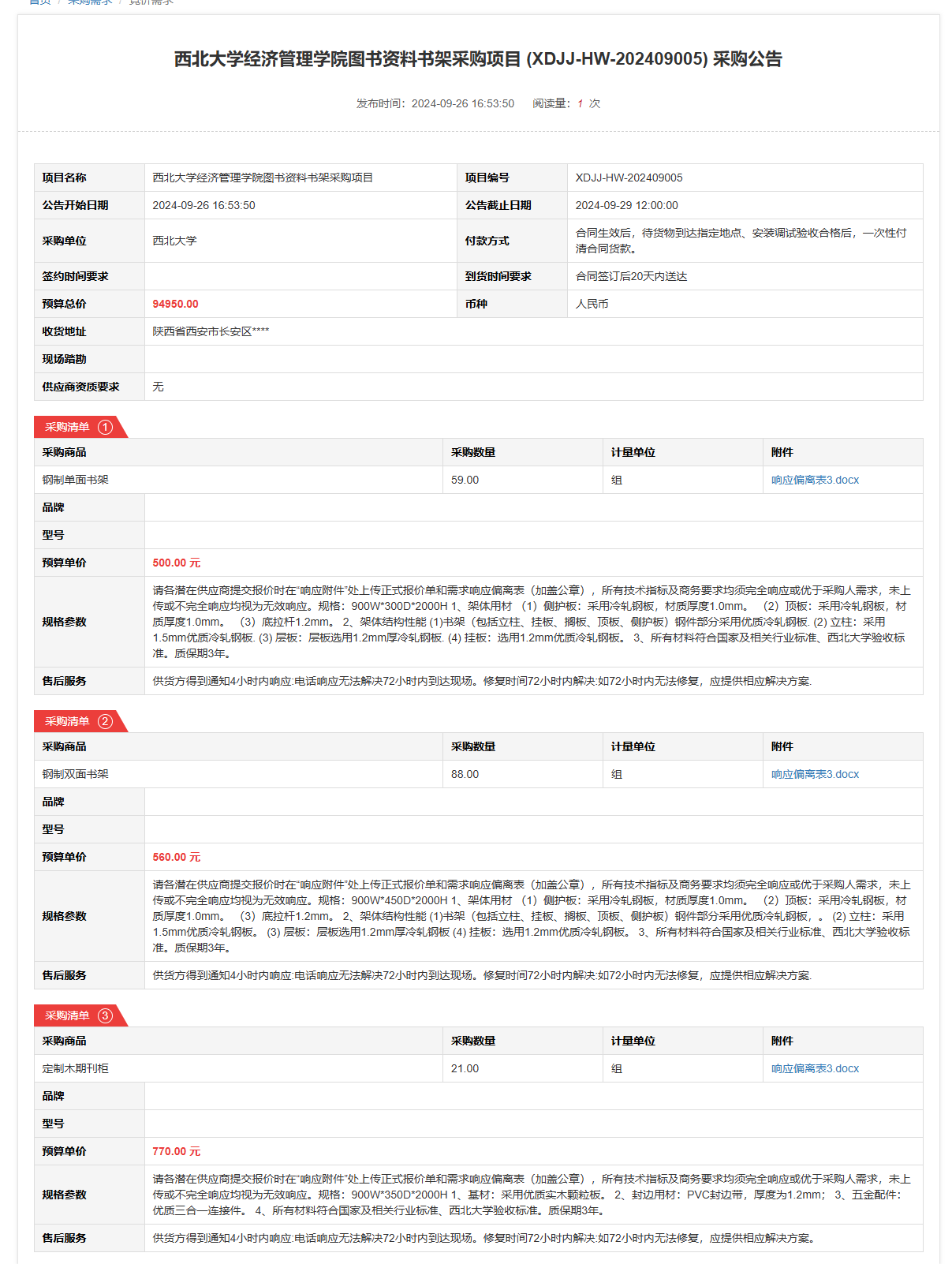 星空app官网经济管理学院图书资料书架采购项目(XDJJ-HW-202409005)竞价采购公告 作者: 编辑: 时间:2024-09-26 原公告链接:https://www.ejingcai.com.cn/site/bidding/detail/12910