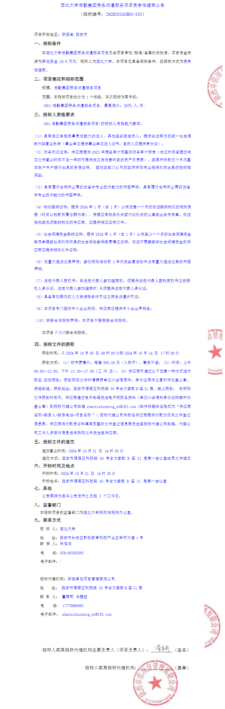 星空app官网后勤集团劳务派遣服务项目竞争性磋商公告
