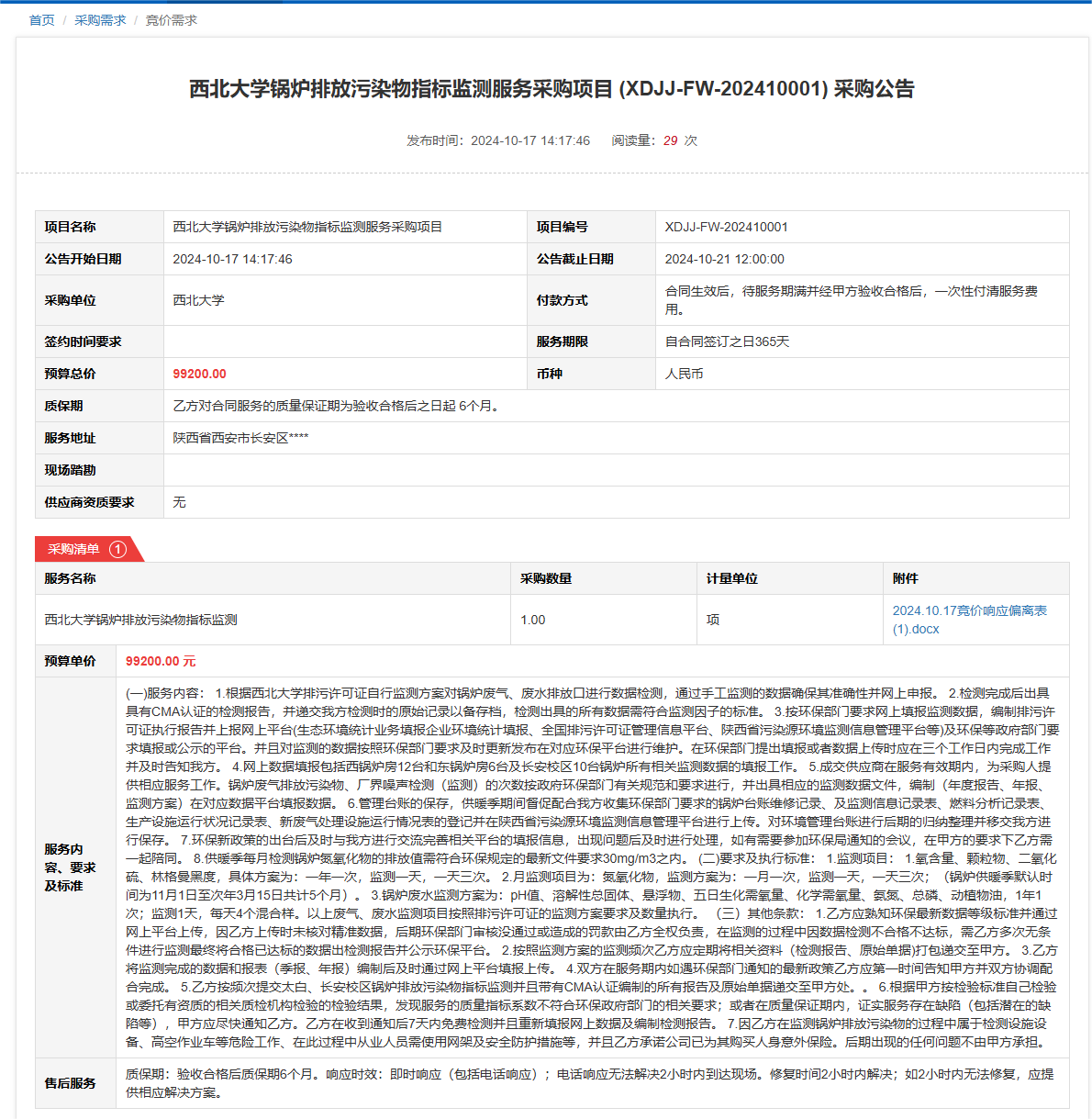 星空app官网锅炉排放污染物指标监测服务采购项目(XDJJ-FW-202410001)竞价采购公告 作者:采购与招标办公室 编辑: 时间:2024-10-18 原公告链接:https://www.ejingcai.com.cn/site/bidding/detail/13425