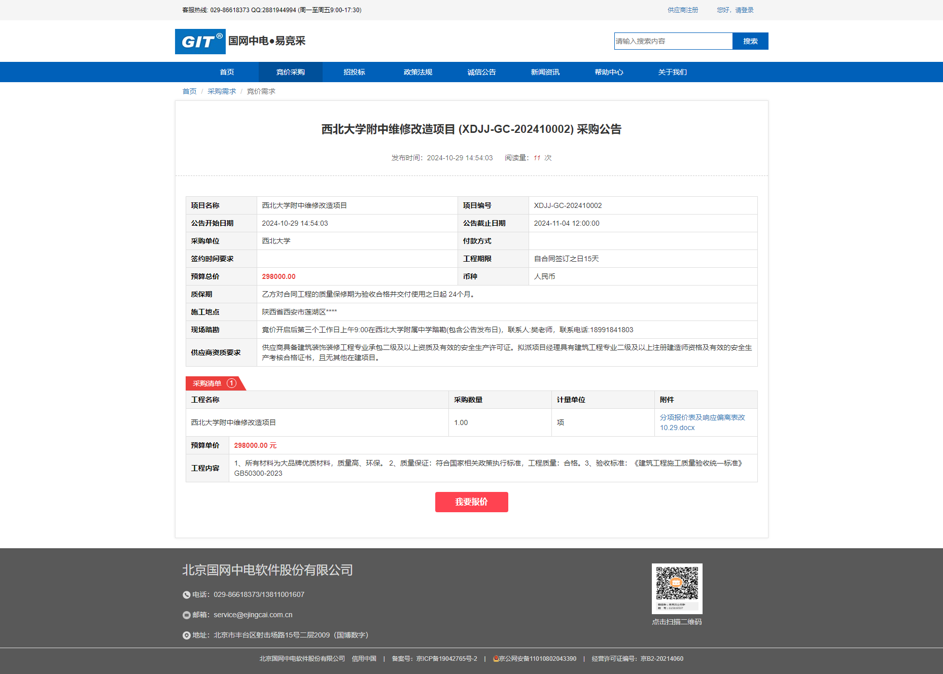 星空app官网附中维修改造项目 (XDJJ-GC-202410002) 采购公告
