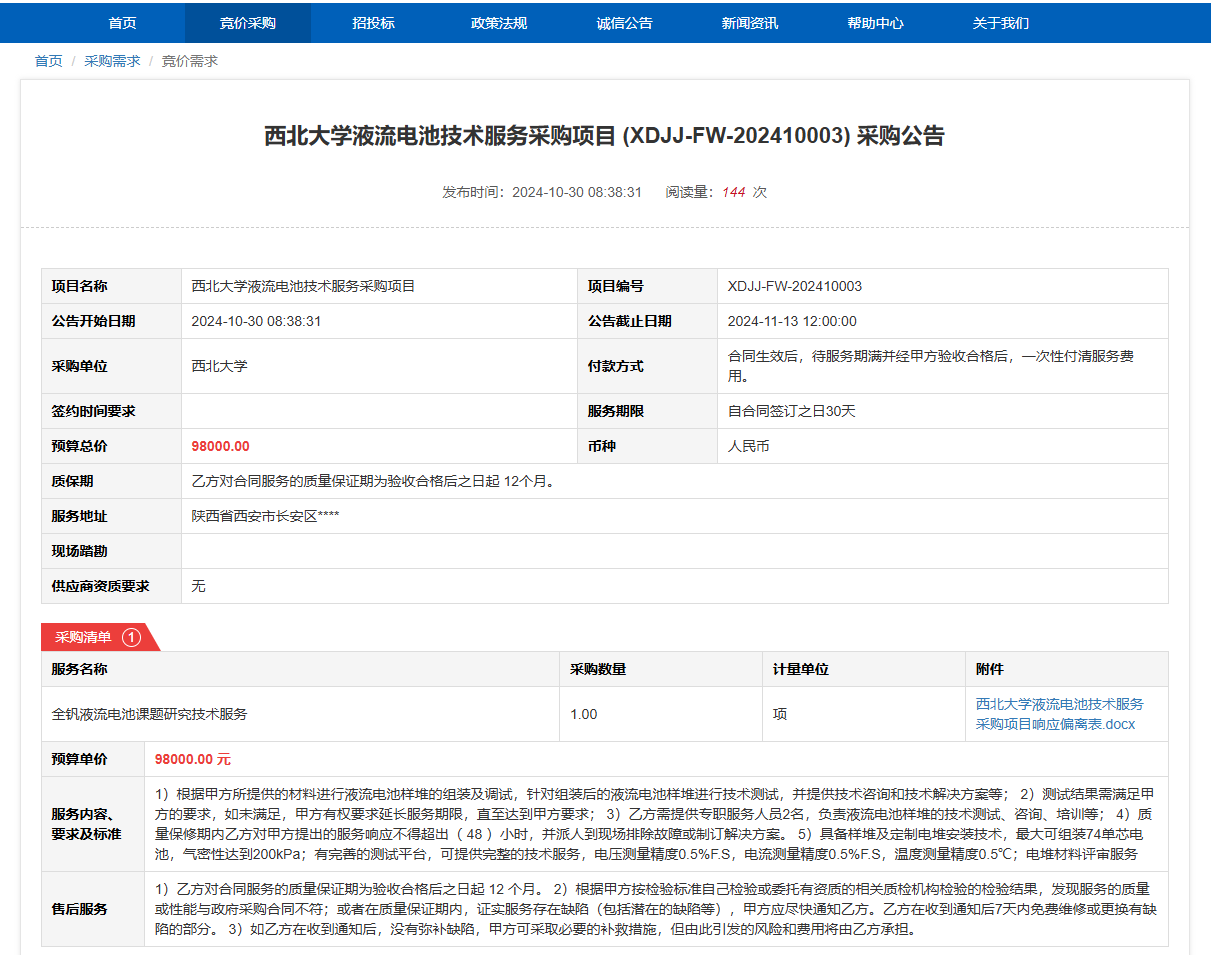 星空app官网液流电池技术服务采购项目(XDJJ-FW-202410003)竞价采购公告 作者:采购与招标办公室 编辑: 时间:2024-10-30 原公告链接:https://www.ejingcai.com.cn/site/bidding/detail/14096