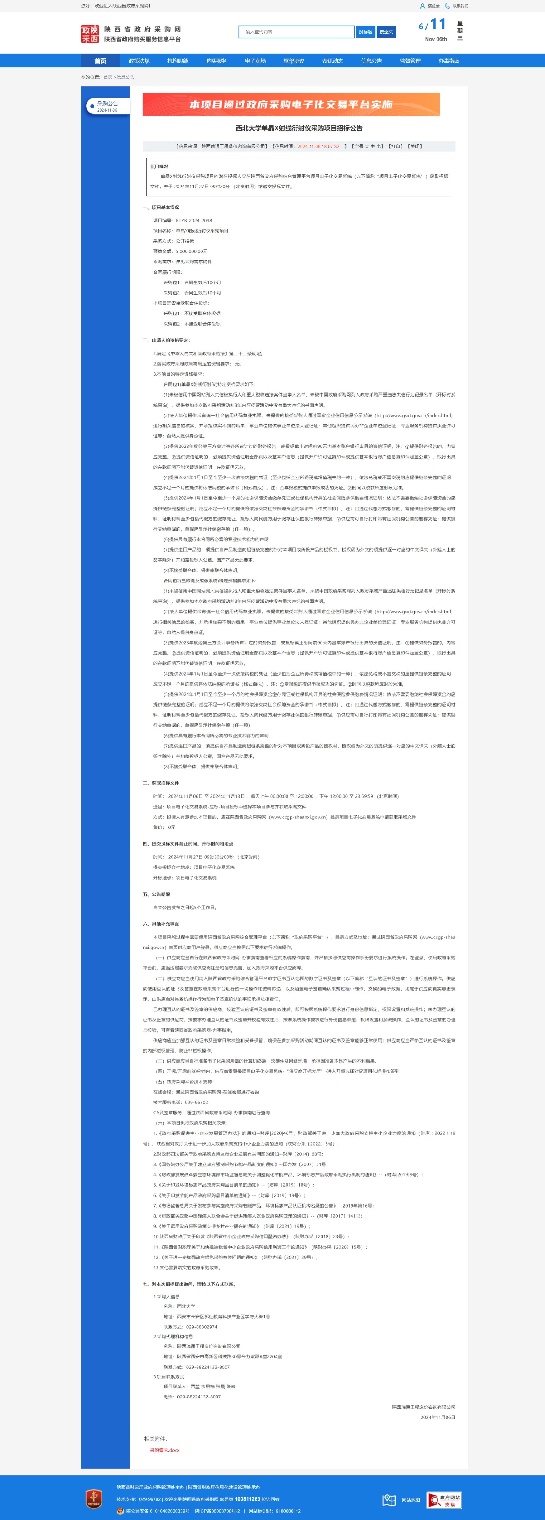 星空app官网单晶X射线衍射仪采购项目招标公告 作者: 编辑:采购与招标办公室 时间:2024-11-06 原公告链接:https://www.ccgp-shaanxi.gov.cn/freecms/site/shaanxi/ggxx/info/2024/8a69c44e9218572b0193011b33fc605b.html?noticeType=001011¬iceId=79ed41b9-9c2f-11ef-8063-08c0eb20c666