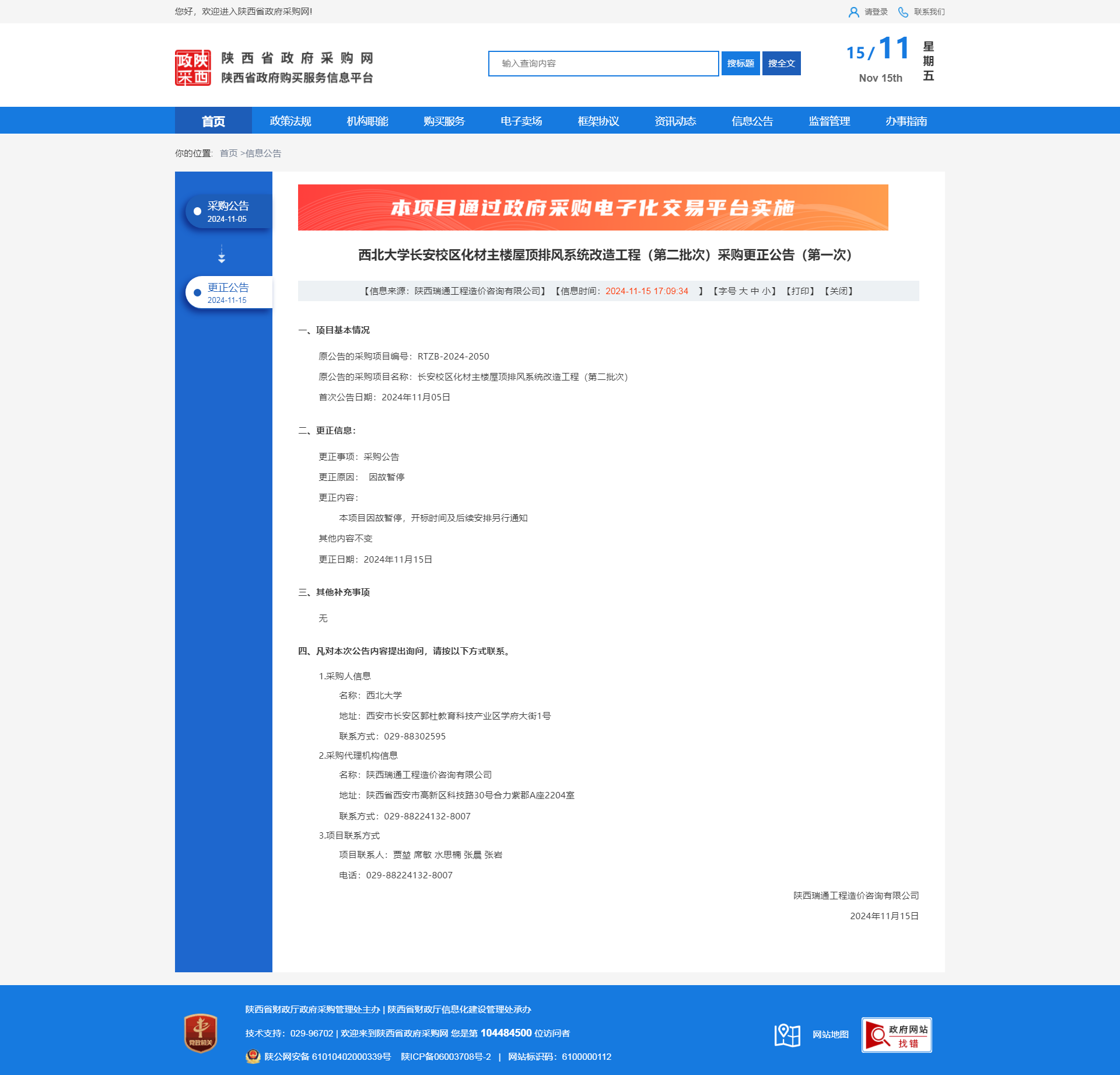 星空app官网长安校区化材主楼屋顶排风系统改造工程(第二批次)暂停公告