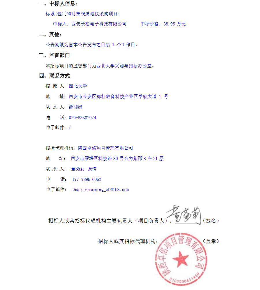 星空app官网在线质谱仪采购项目采购结果公示 作者: 编辑:薛利娟 时间:2024-11-18 原公告链接:http://bulletin.sntba.com/resultBulletin/2024-11-18/1985216.html