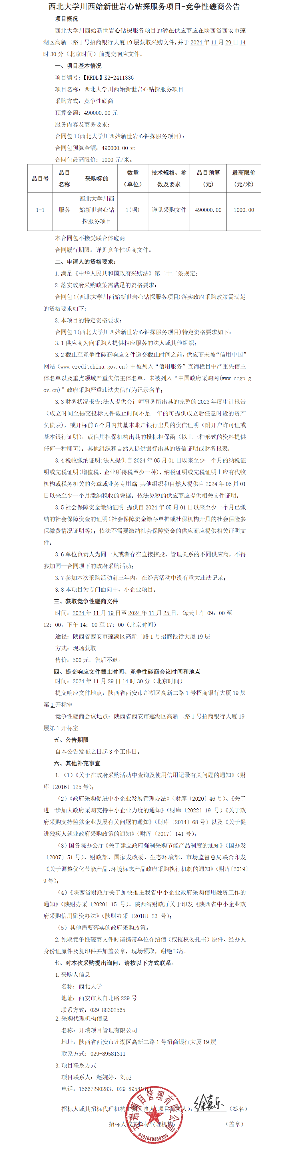 星空app官网西安市古生物信息学重点实验室岩芯钻取服务项目竞争性磋商公告