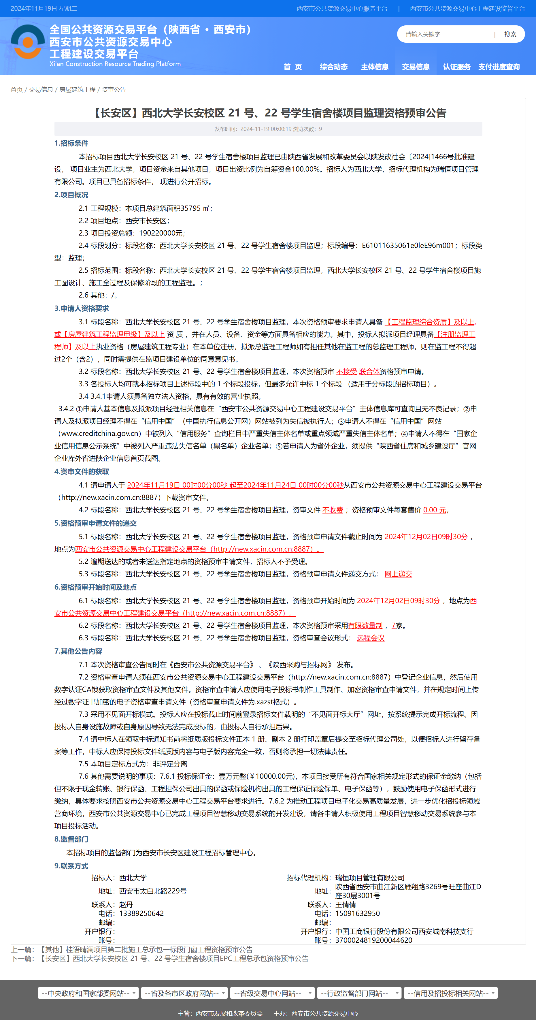 星空app官网长安校区 21 号、22 号学生宿舍楼项目监理资格预审公告
