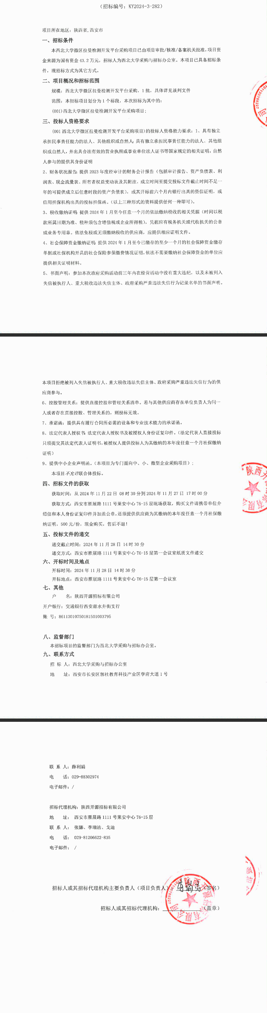 星空app官网微区拉曼检测开发平台采购项目竞争性谈判公告 作者: 编辑:薛利娟 时间:2024-11-22 原公告链接:http://bulletin.sntba.com/biddingBulletin/2024-11-22/1987907.html