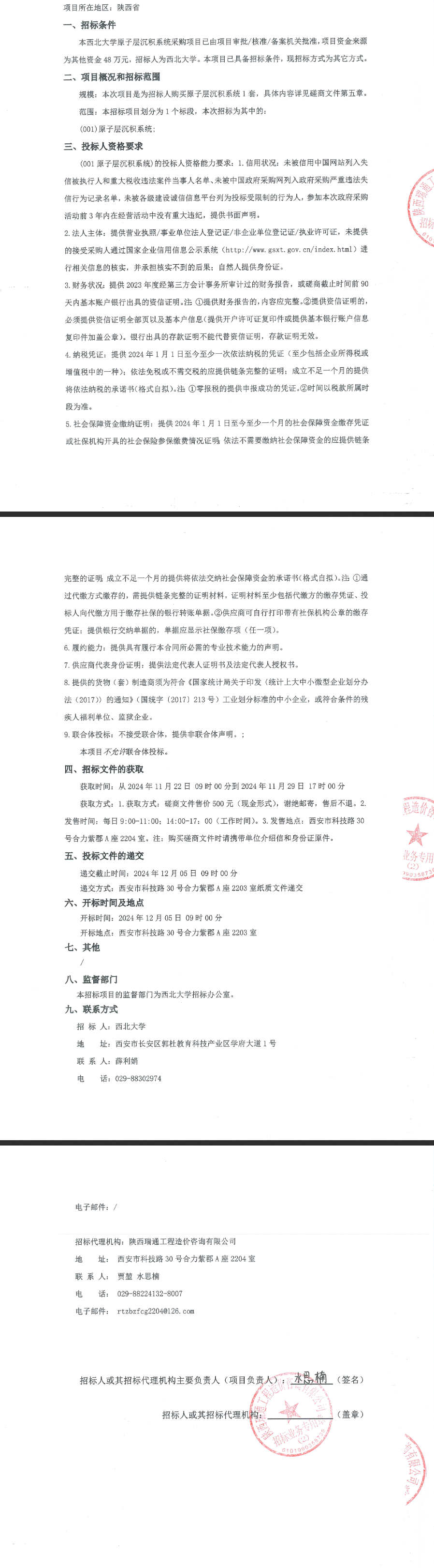 星空app官网原子层沉积系统采购项目竞争性磋商公告 作者: 编辑:薛利娟 时间:2024-11-22 原公告链接:http://bulletin.sntba.com/biddingBulletin/2024-11-22/1987798.html