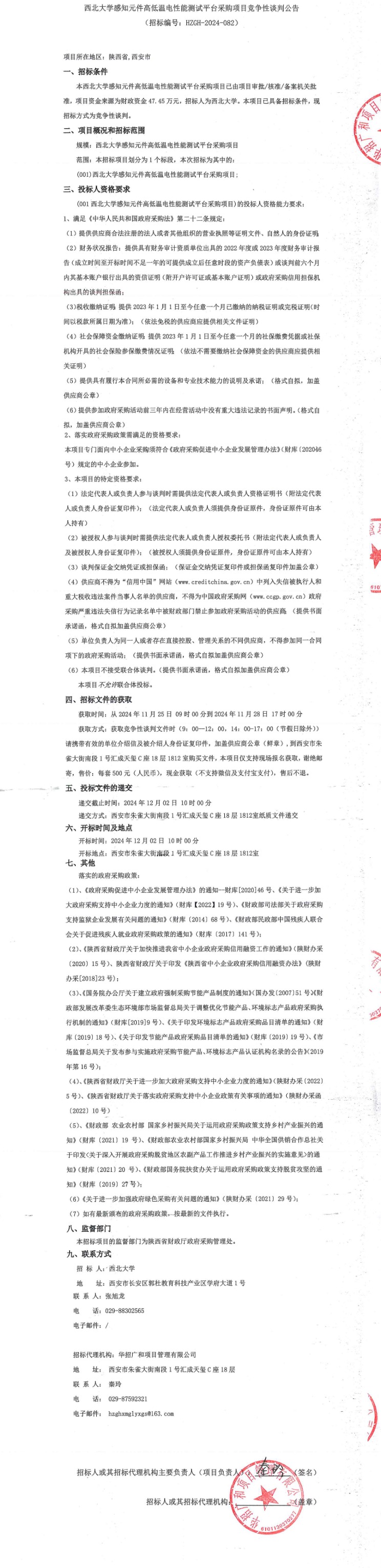 星空app官网感知元件高低温电性能测试平台采购项目竞争性谈判公告