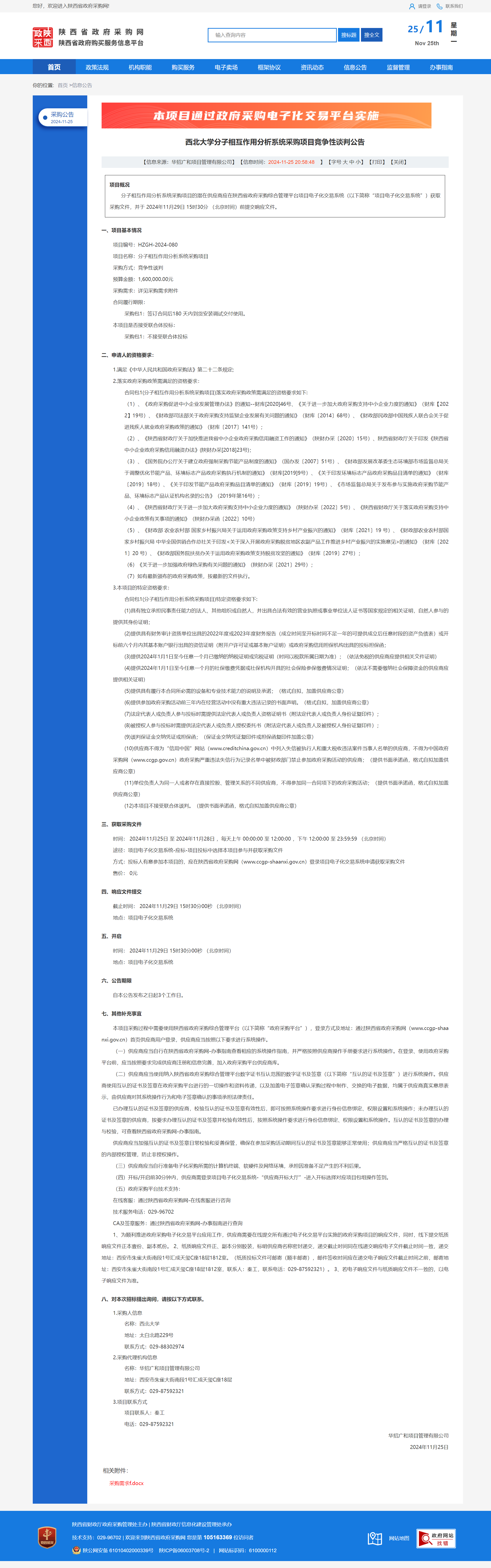 星空app官网分子相互作用分析系统采购项目竞争性谈判公告