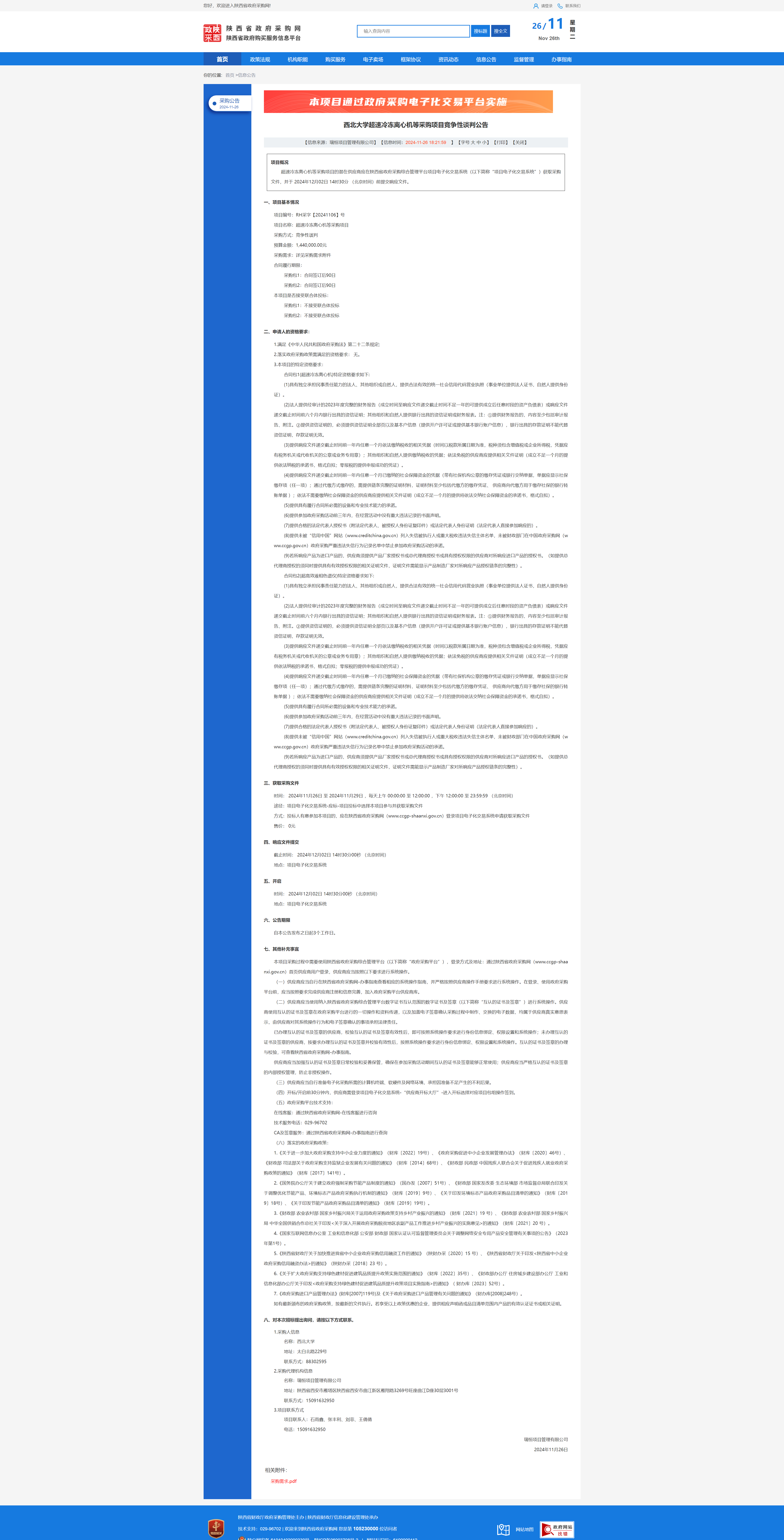 星空app官网超速冷冻离心机等采购项目竞争性谈判公告