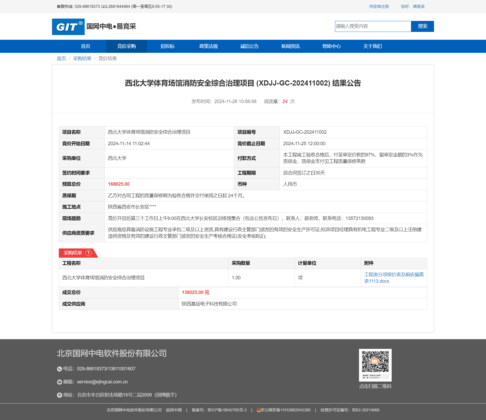 星空app官网体育场馆消防安全综合治理项目 (XDJJ-GC-202411002) 结果公告