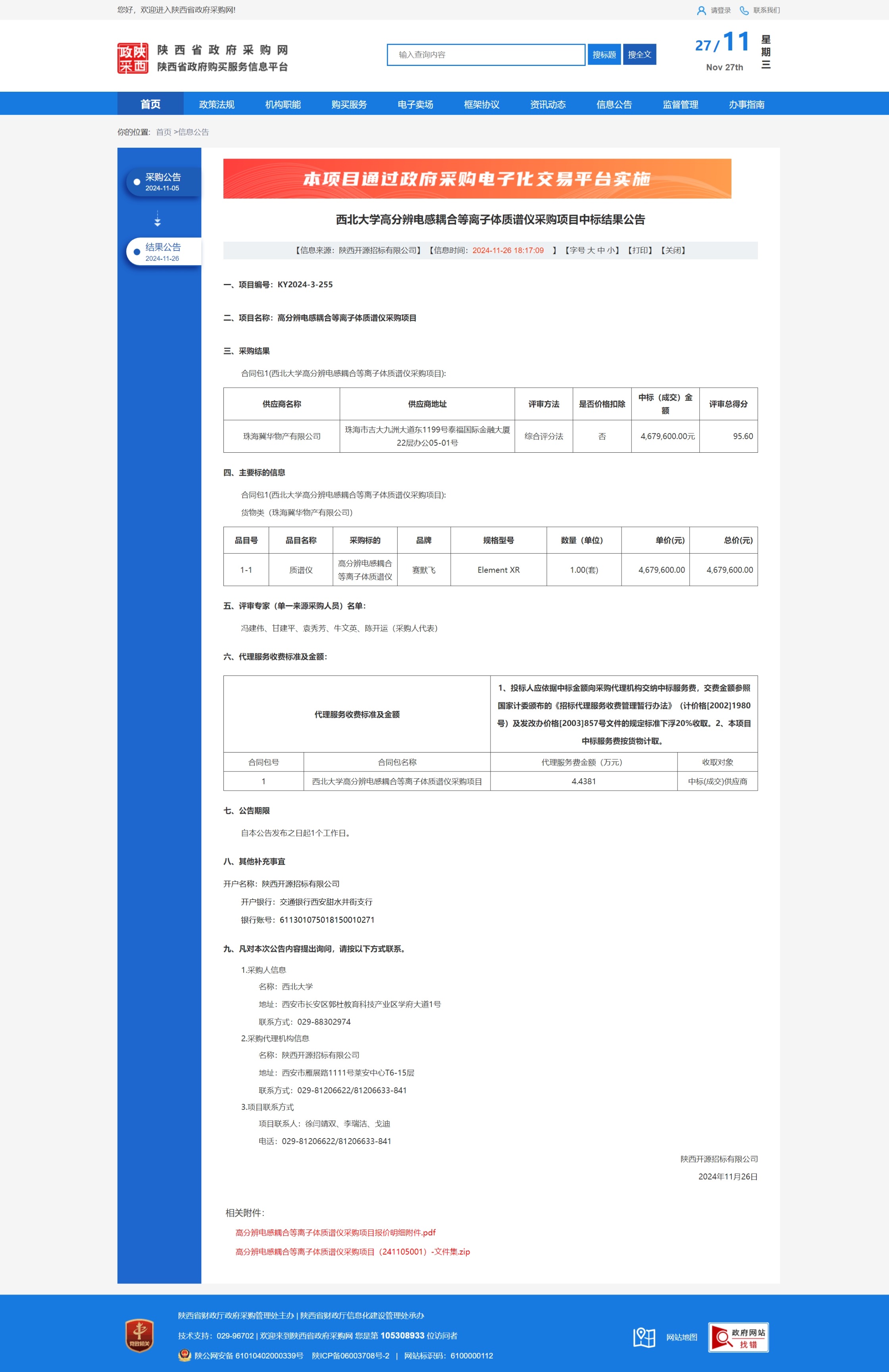 星空app官网高分辨电感耦合等离子体质谱仪采购项目中标结果公告 作者: 编辑:薛利娟 时间:2024-11-27 原公告链接:https://www.ccgp-shaanxi.gov.cn/freecms/site/shaanxi/ggxx/info/2024/8a69c44e9218572b019367f1f6a41b05.html?noticeType=001021¬iceId=2f51259d-abe1-11ef-8063-08c0eb20c666