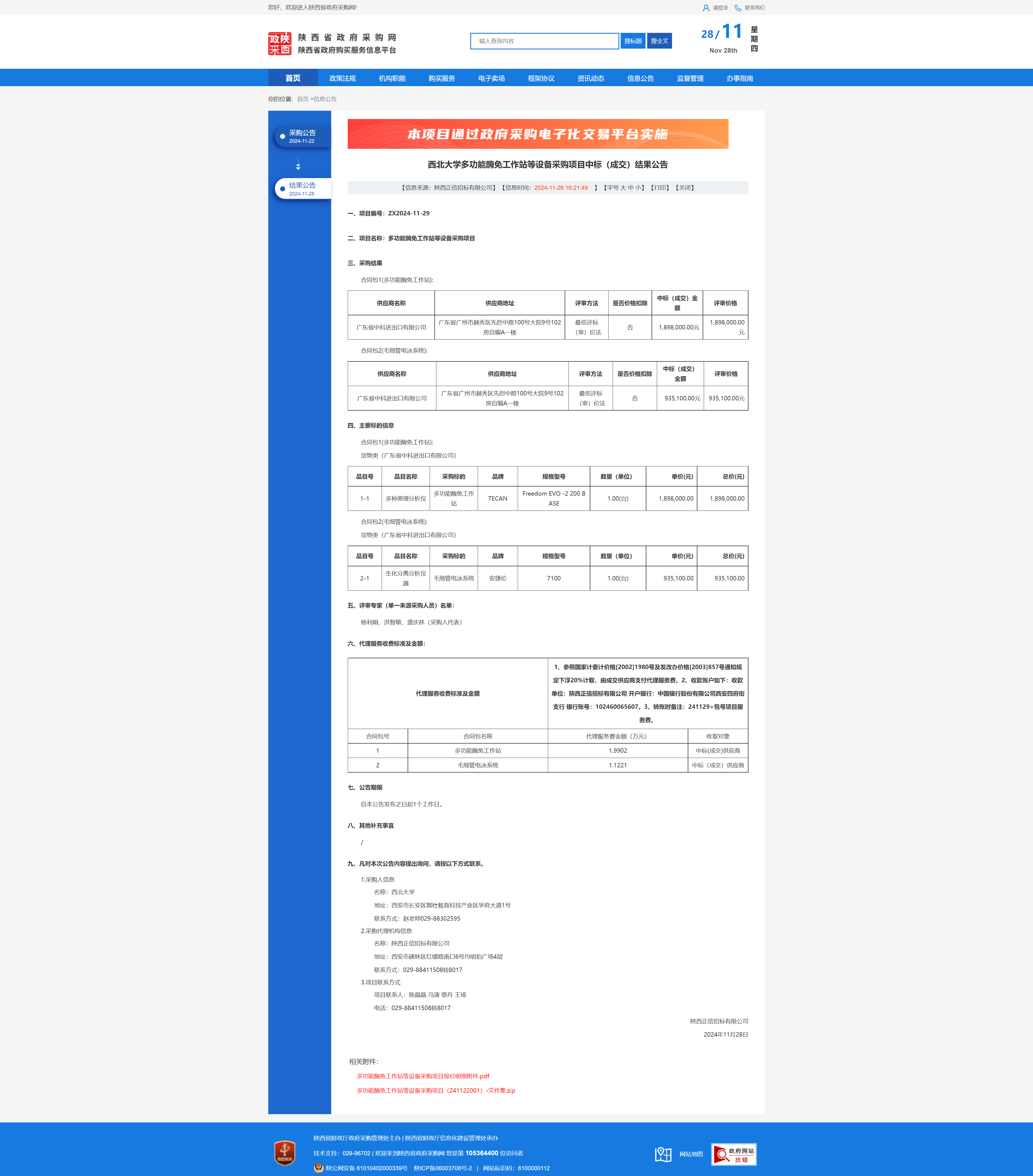 星空app官网多功能酶免工作站等设备采购项目中标(成交)结果公告