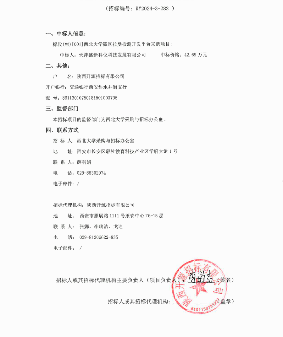 星空app官网微区拉曼检测开发平台采购项目成交公告 作者: 编辑:薛利娟 时间:2024-11-28 原公告链接:http://bulletin.sntba.com/resultBulletin/2024-11-28/1990304.html
