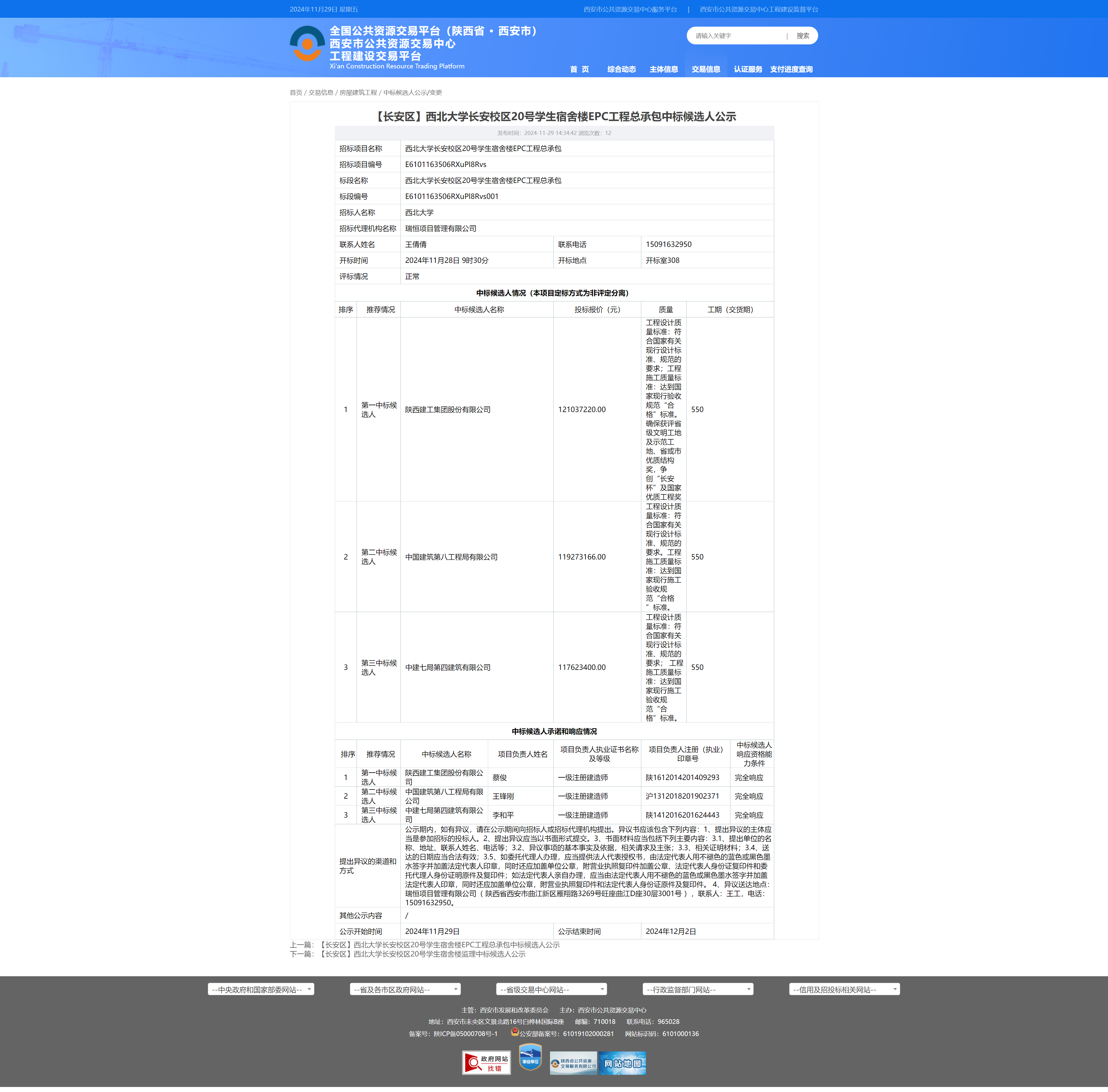 星空app官网长安校区20号学生宿舍楼EPC工程总承包中标候选人公示