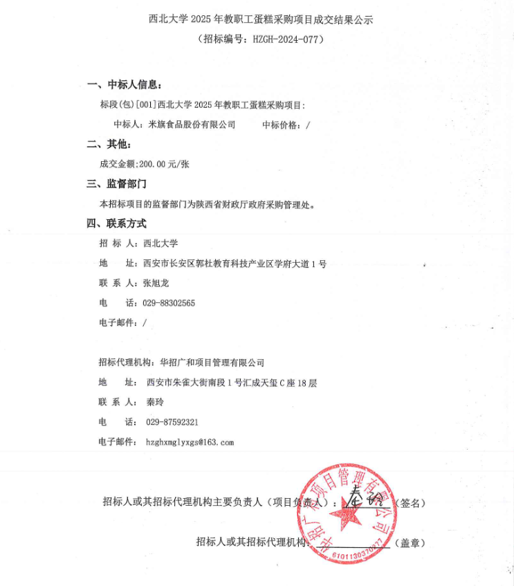 星空app官网2025年教职工蛋糕采购项目成交结果公示