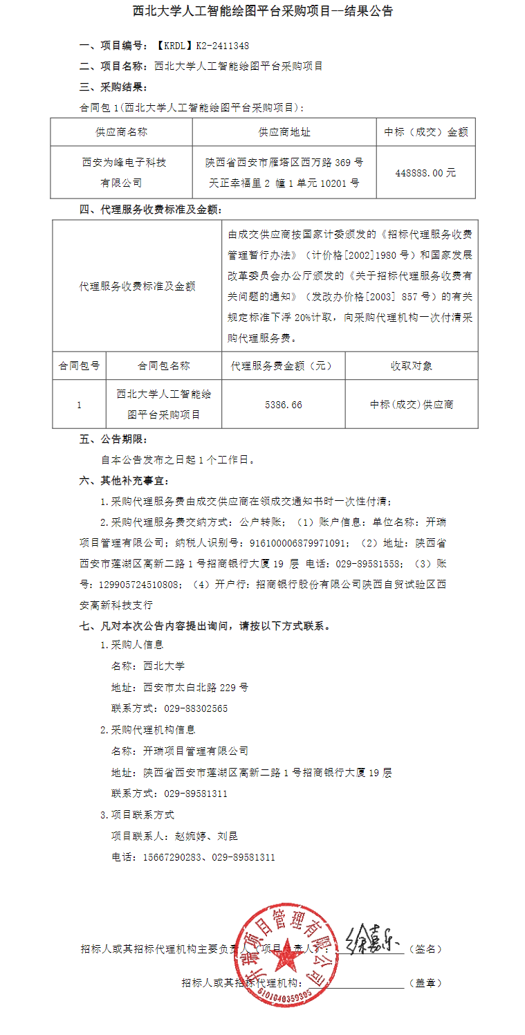 星空app官网人工智能绘图平台采购项目结果公告