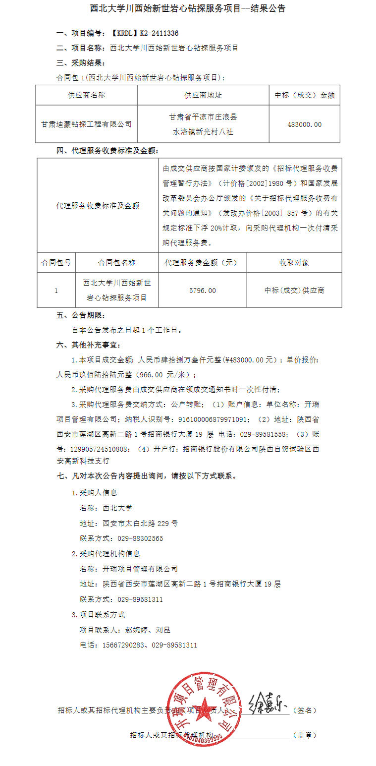 星空app官网西安市古生物信息学重点实验室岩芯钻取服务项目结果公告