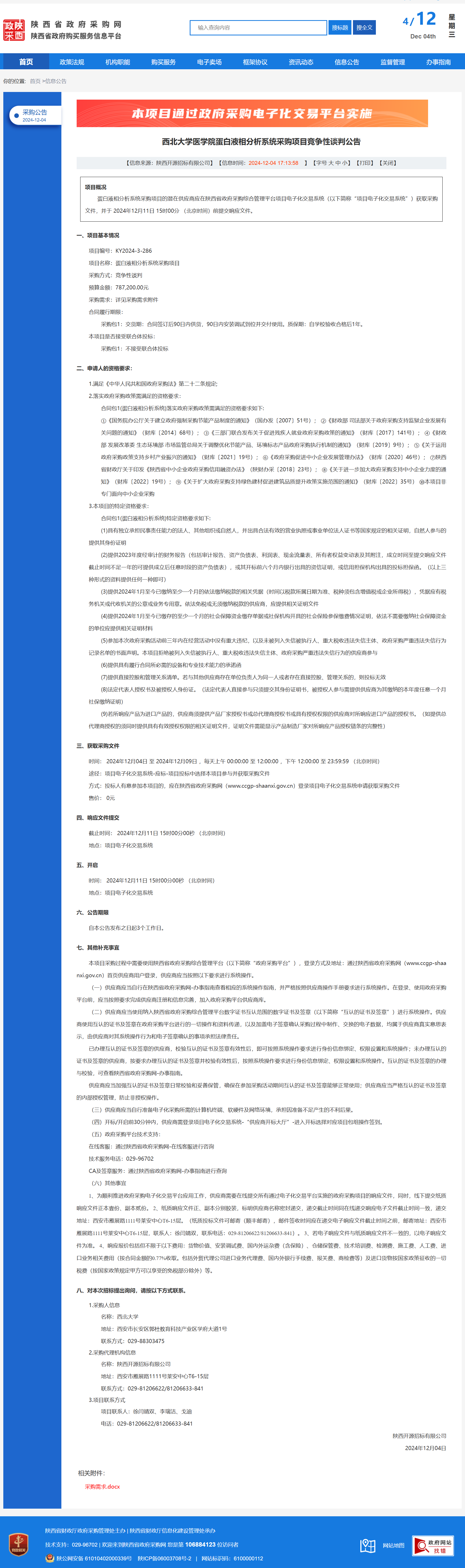 星空app官网医学院蛋白液相分析系统采购项目竞争性谈判公告 作者:采购与招标办公室 编辑: 时间:2024-12-04 原公告链接:https://www.ccgp-shaanxi.gov.cn/freecms/site/shaanxi/ggxx/info/2024/8a69c25192185737019390c312de08f0.html?noticeType=001013¬iceId=b3194844-b221-11ef-8063-08c0eb20c666