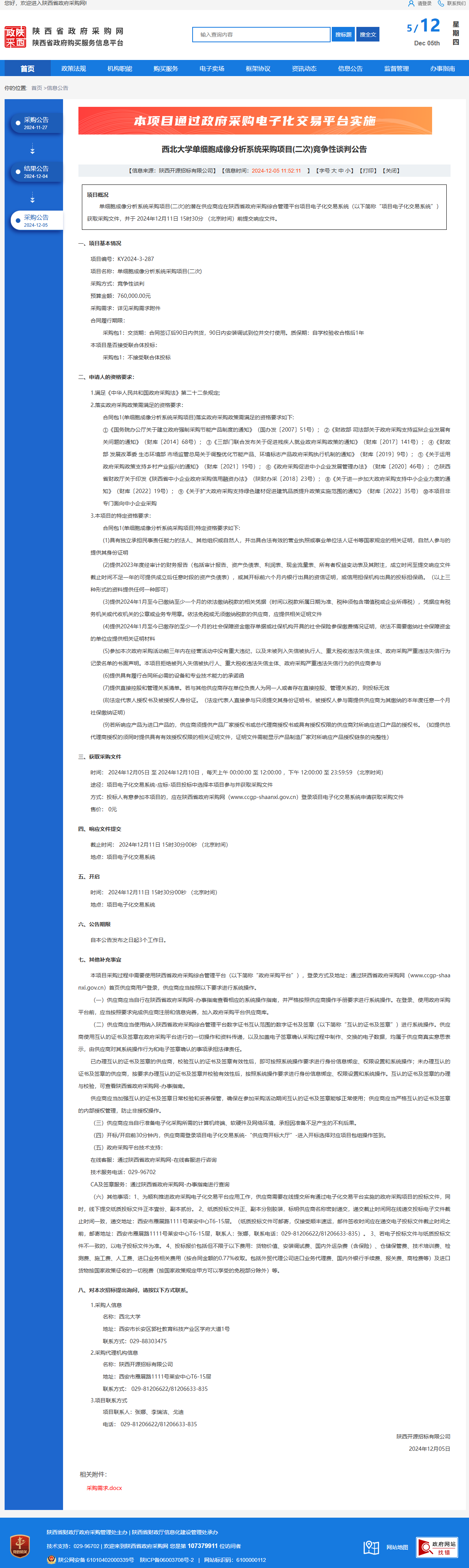星空app官网单细胞成像分析系统采购项目(二次)竞争性谈判公告 作者:采购与招标办公室 编辑: 时间:2024-12-05 原公告链接:https://www.ccgp-shaanxi.gov.cn/freecms/site/shaanxi/ggxx/info/2024/8a69c251921857370193912b91403442.html?noticeType=001013¬iceId=e9b719c8-b2bd-11ef-8063-08c0eb20c666