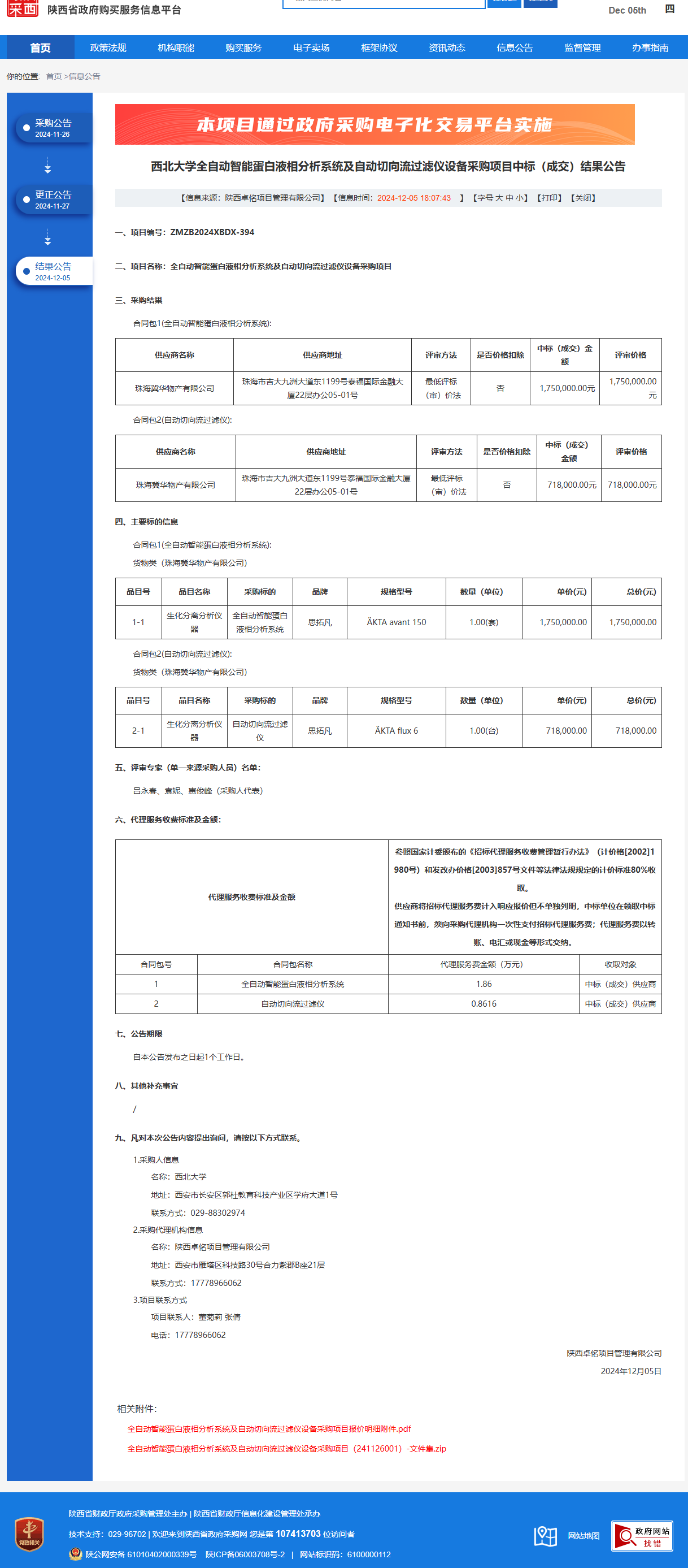 星空app官网全自动智能蛋白液相分析系统及自动切向流过滤仪设备采购项目中标(成交)结果公告 作者:采购与招标办公室 编辑: 时间:2024-12-05 原公告链接:https://www.ccgp-shaanxi.gov.cn/freecms/site/shaanxi/ggxx/info/2024/8a69c44e9218572b01939643fffe267c.html?noticeType=001023¬iceId=5fe3fe15-b2f2-11ef-8063-08c0eb20c666