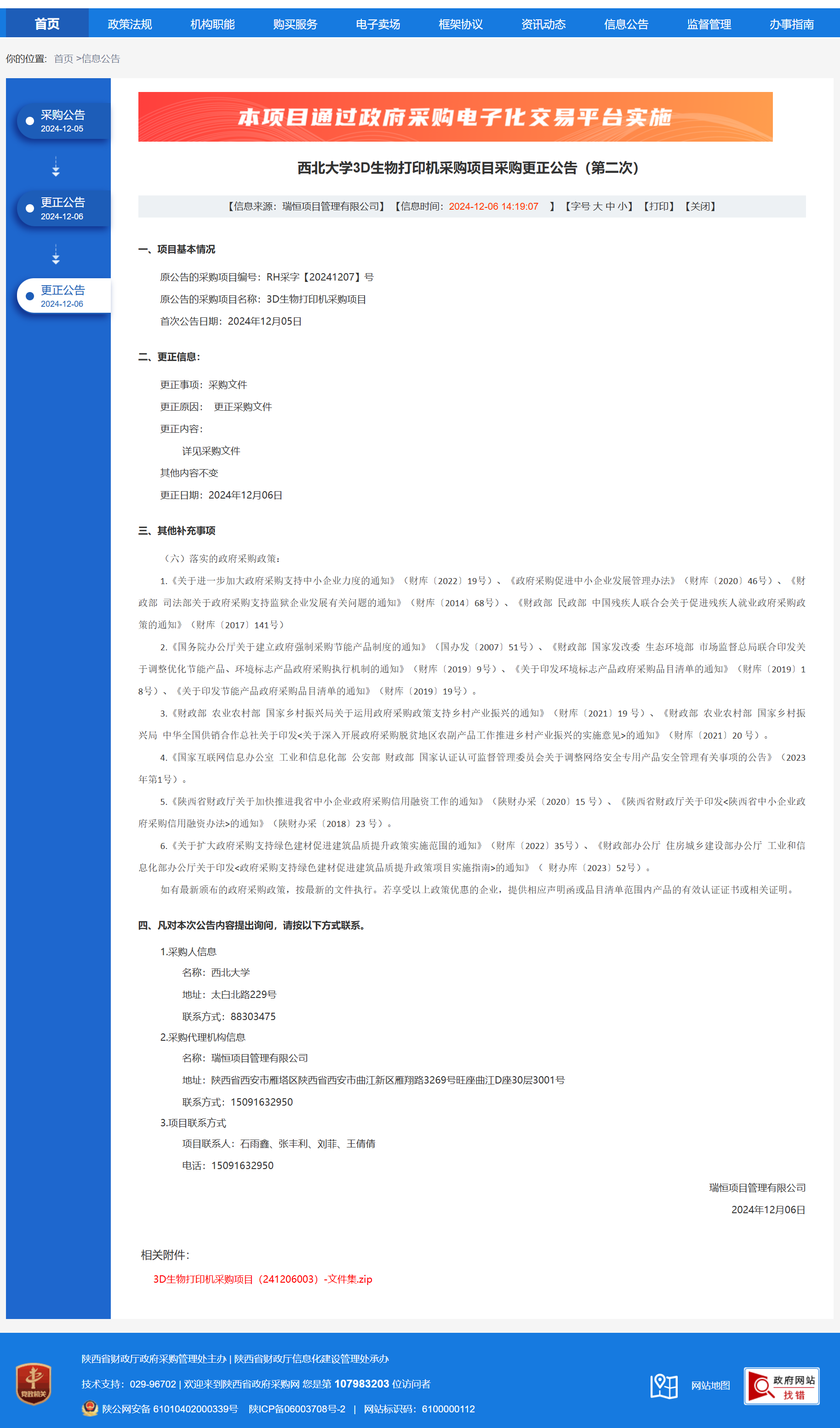 星空app官网3D生物打印机采购项目采购更正公告(第二次) 作者:采购与招标办公室 编辑: 时间:2024-12-06 原公告链接:https://www.ccgp-shaanxi.gov.cn/freecms/site/shaanxi/ggxx/info/2024/8a69c5a59218576d01939a447c2a1448.html?noticeType=001031¬iceId=9bb5c25d-b39b-11ef-8063-08c0eb20c666