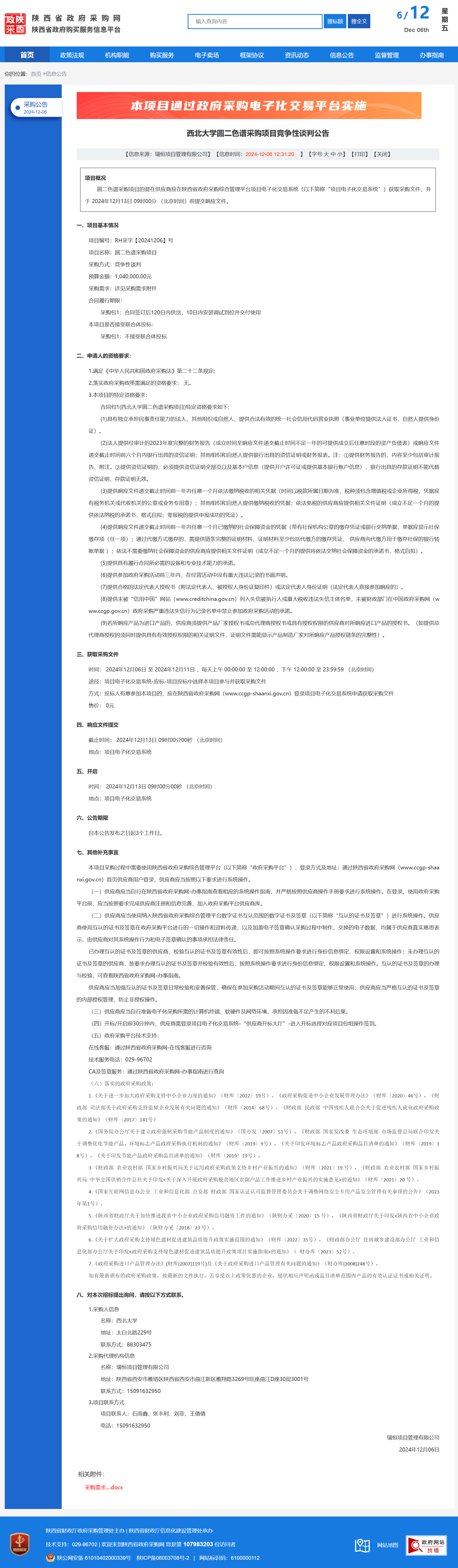 星空app官网圆二色谱采购项目竞争性谈判公告 作者:采购与招标办公室 编辑: 时间:2024-12-06 原公告链接:https://www.ccgp-shaanxi.gov.cn/freecms/site/shaanxi/ggxx/info/2024/8a69c44e9218572b01939a34451055bc.html?noticeType=001013¬iceId=8d0f9f1f-b38c-11ef-8063-08c0eb20c666