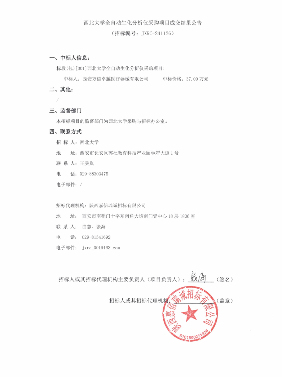 星空app官网全自动生化分析仪采购项目成交结果公告 作者:采购与招标办公室 编辑: 时间:2024-12-10 原公告链接:http://bulletin.sntba.com/resultBulletin/2024-12-10/1995691.html