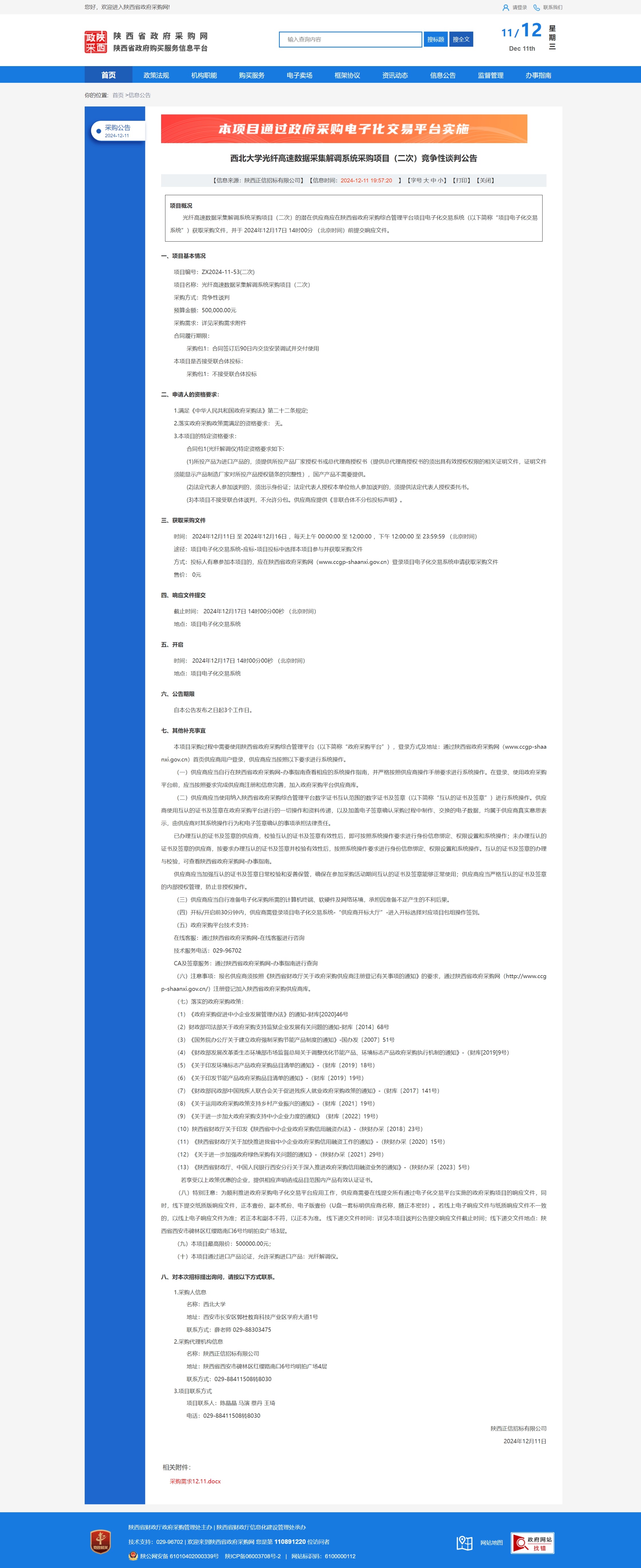 星空app官网光纤高速数据采集解调系统采购项目(二次)竞争性谈判公告 作者: 编辑:薛利娟 时间:2024-12-11 原公告链接:https://www.ccgp-shaanxi.gov.cn/freecms/site/shaanxi/ggxx/info/2024/8a69c251921857370193b57e9b8200ae.html?noticeType=001013¬iceId=b1b907cc-b7b8-11ef-8063-08c0eb20c666