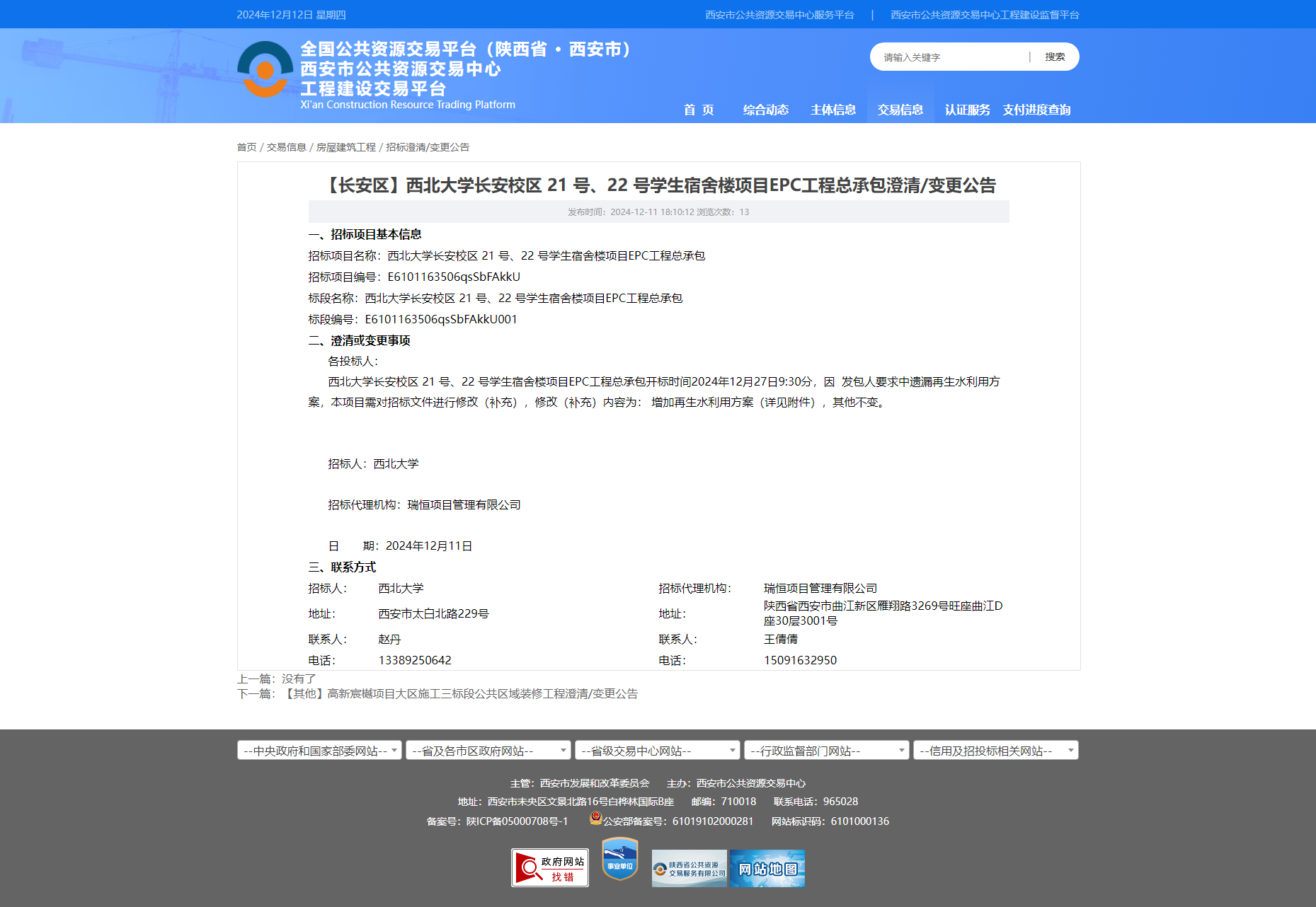 星空app官网长安校区 21 号、22 号学生宿舍楼项目EPC工程总承包澄清/变更公告