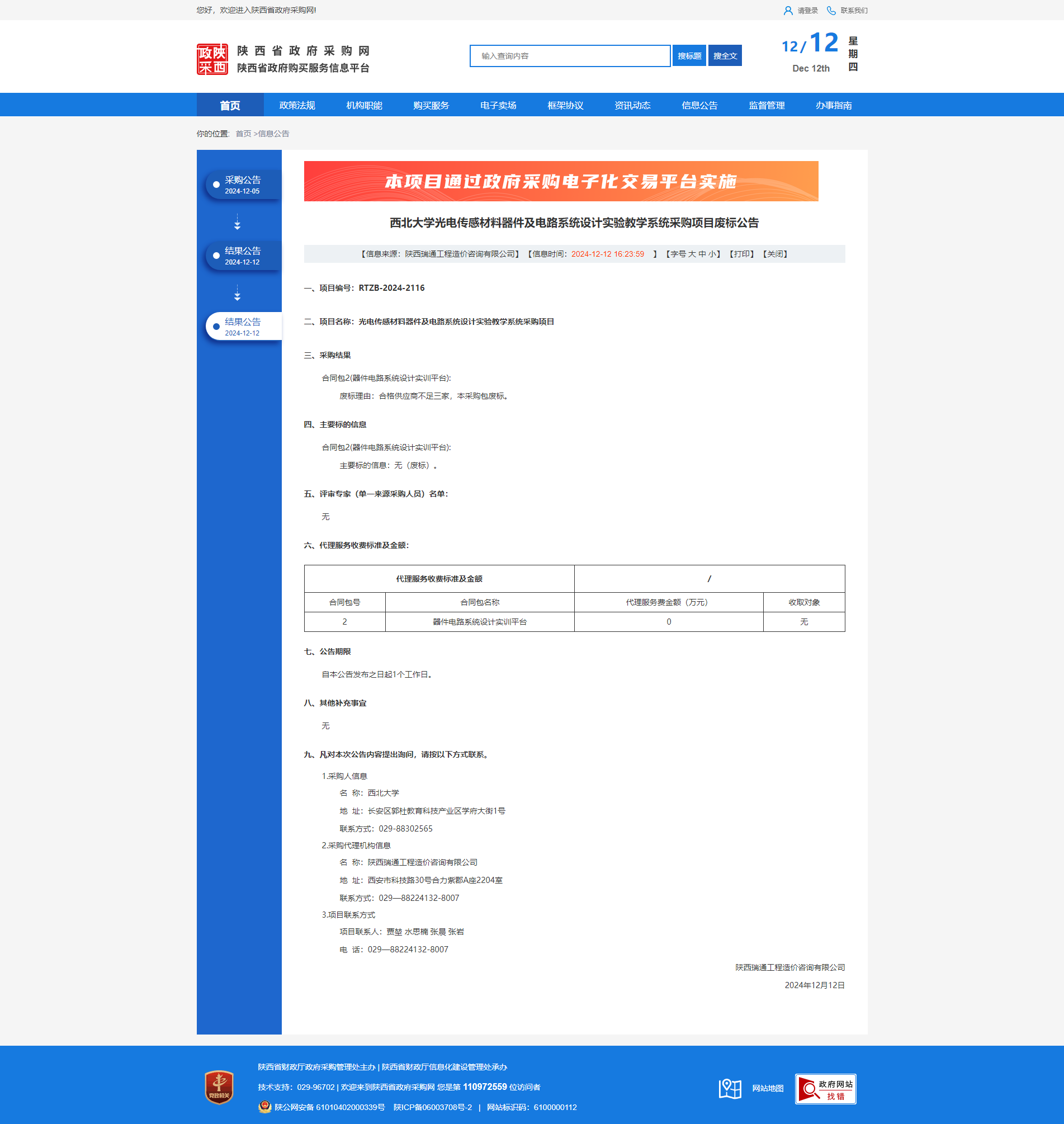 星空app官网光电传感材料器件及电路系统设计实验教学系统采购项目中标(成交)结果公告
