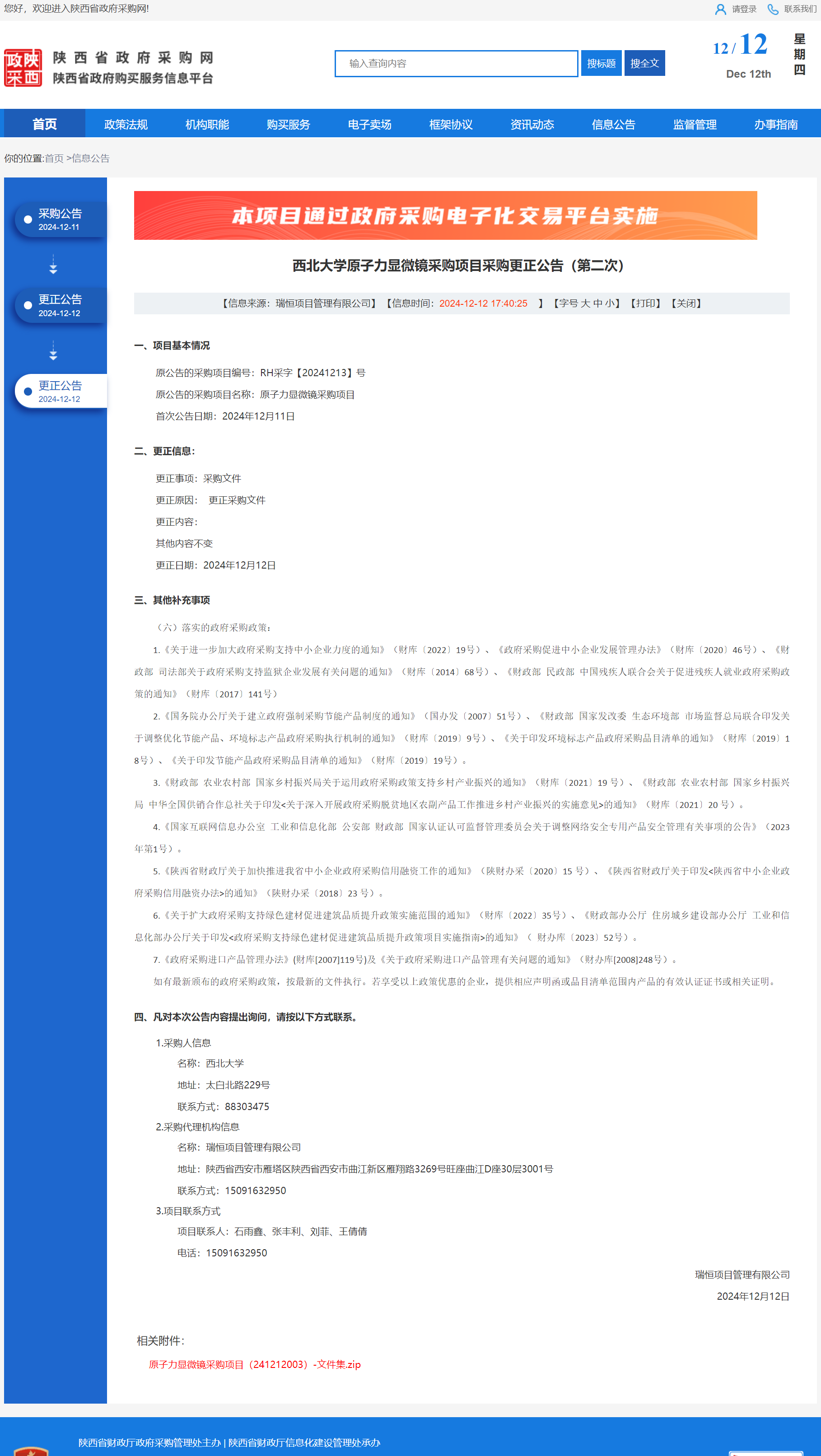 星空app官网原子力显微镜采购项目采购更正公告(第二次) 作者:采购与招标办公室 编辑: 时间:2024-12-12 原公告链接:https://www.ccgp-shaanxi.gov.cn/freecms/site/shaanxi/ggxx/info/2024/8a69c5a59218576d0193ba3c419e1460.html?noticeType=001031¬iceId=bbffc791-b86e-11ef-8063-08c0eb20c666