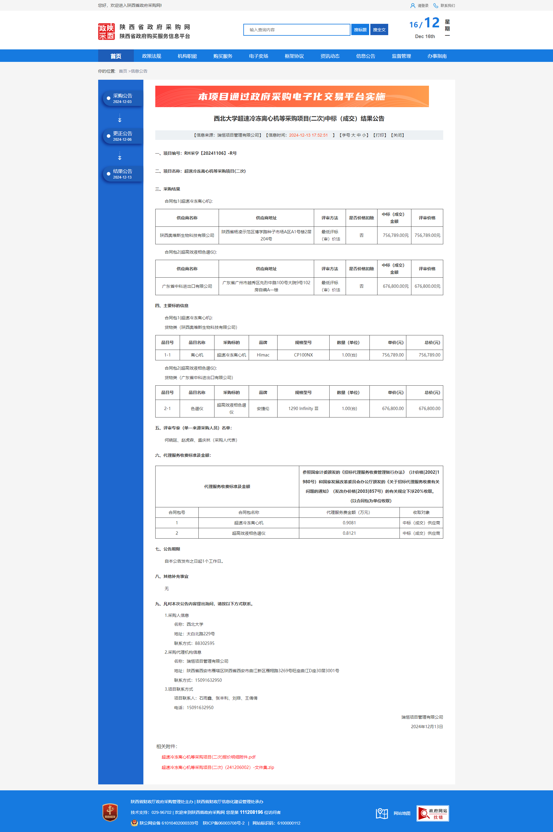 星空app官网超速冷冻离心机等采购项目(二次)中标(成交)结果公告