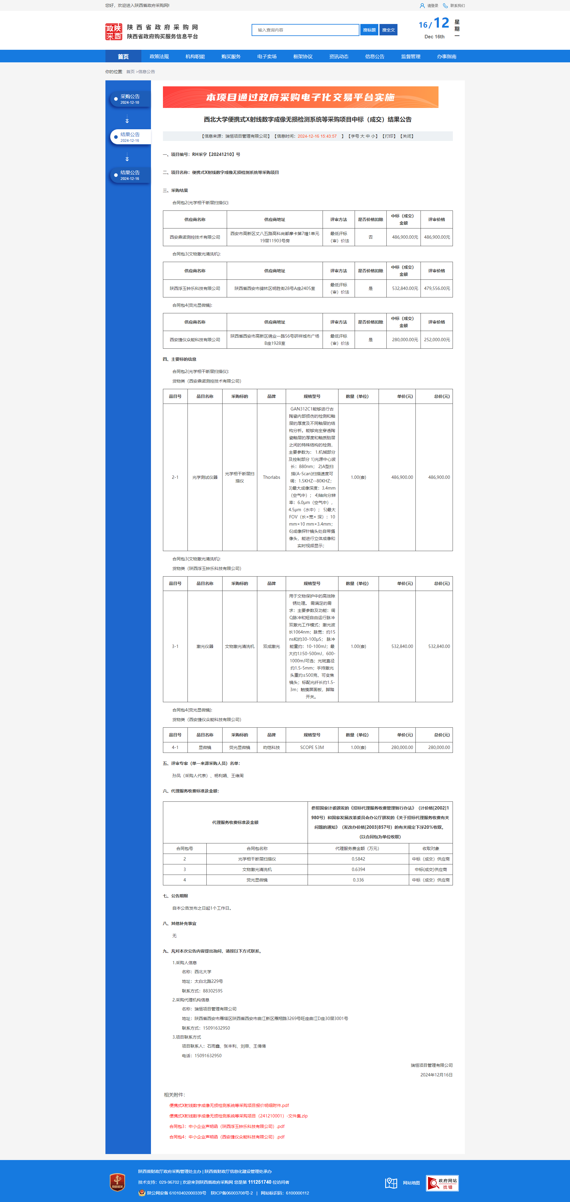 星空app官网便携式X射线数字成像无损检测系统等采购项目中标(成交)结果公告