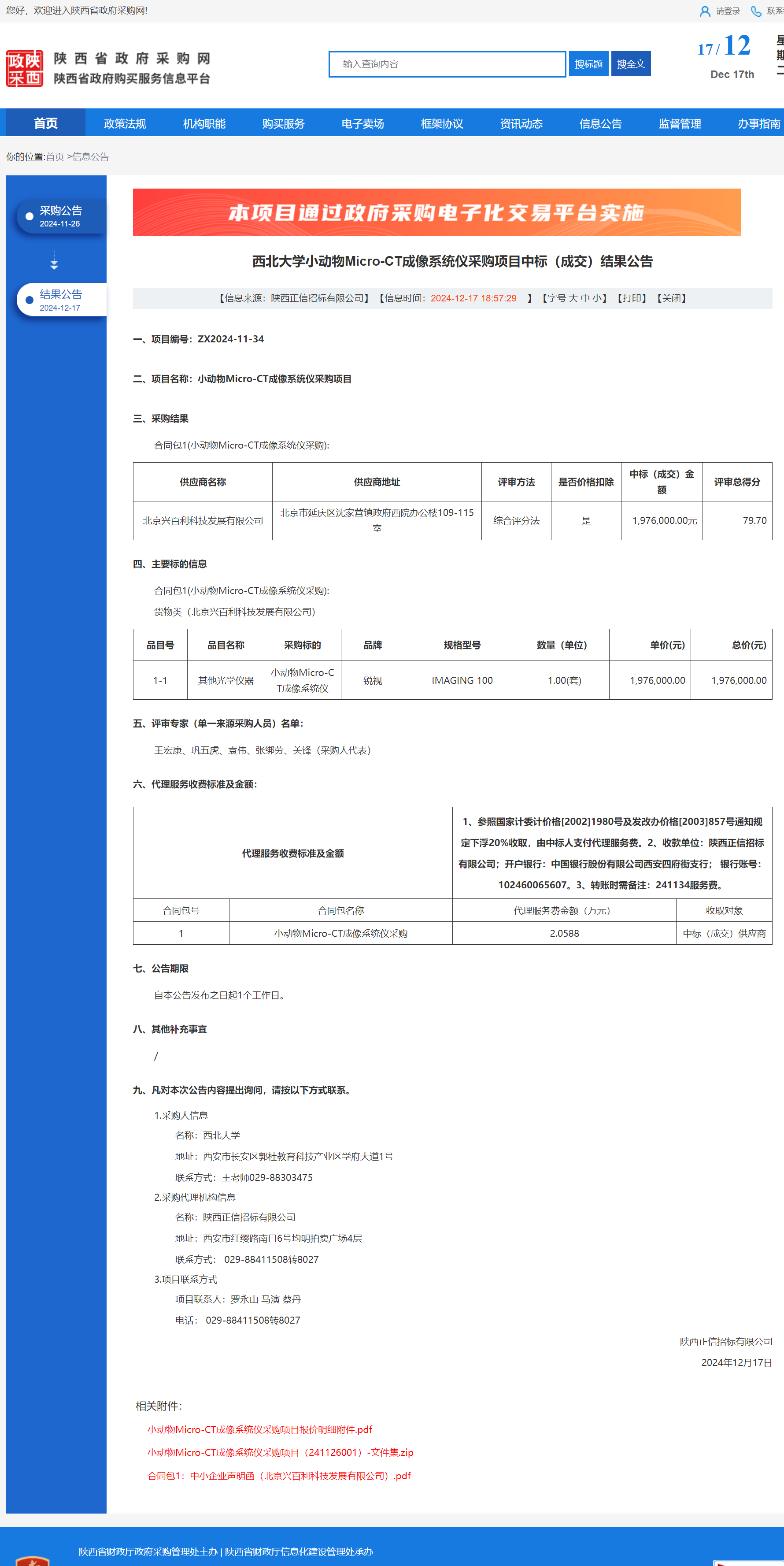 星空app官网小动物Micro-CT成像系统仪采购项目中标(成交)结果公告 作者:采购与招标办公室 编辑: 时间:2024-12-17 原公告链接:https://www.ccgp-shaanxi.gov.cn/freecms/site/shaanxi/ggxx/info/2024/8a69c44e9218572b0193d4033f7641ea.html?noticeType=001021¬iceId=56a58cac-bc67-11ef-8063-08c0eb20c666